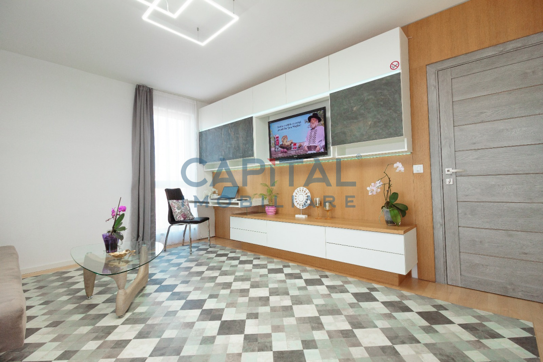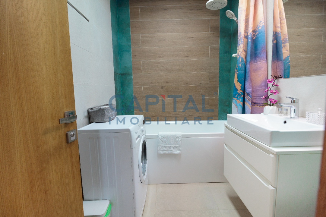 – Centrala termica proprie, Aer conditionat, Masina de spalat rufe, Masina de spalat vase, TV