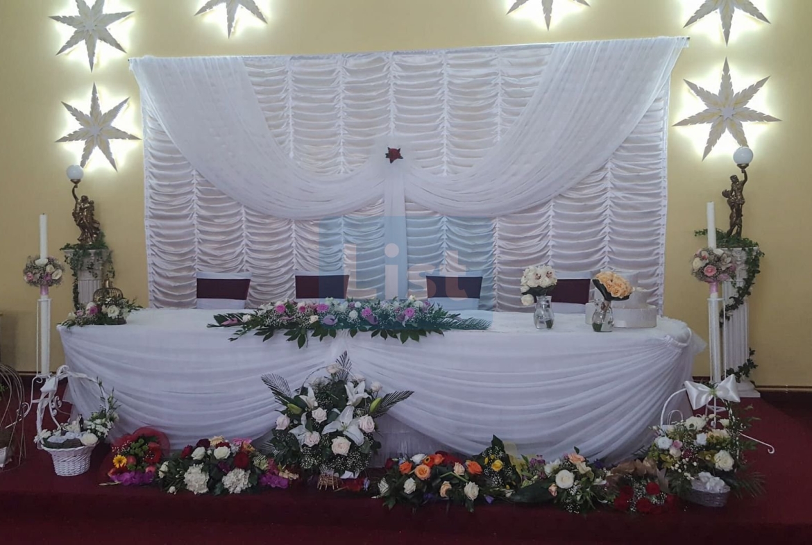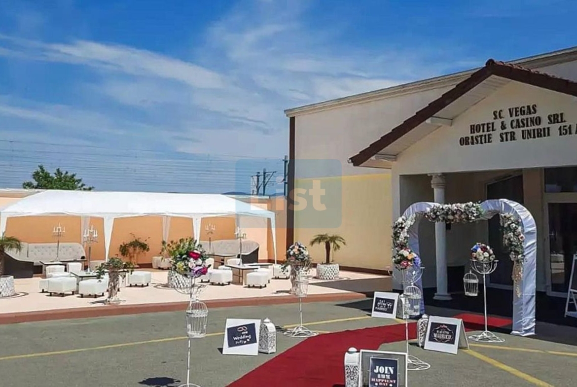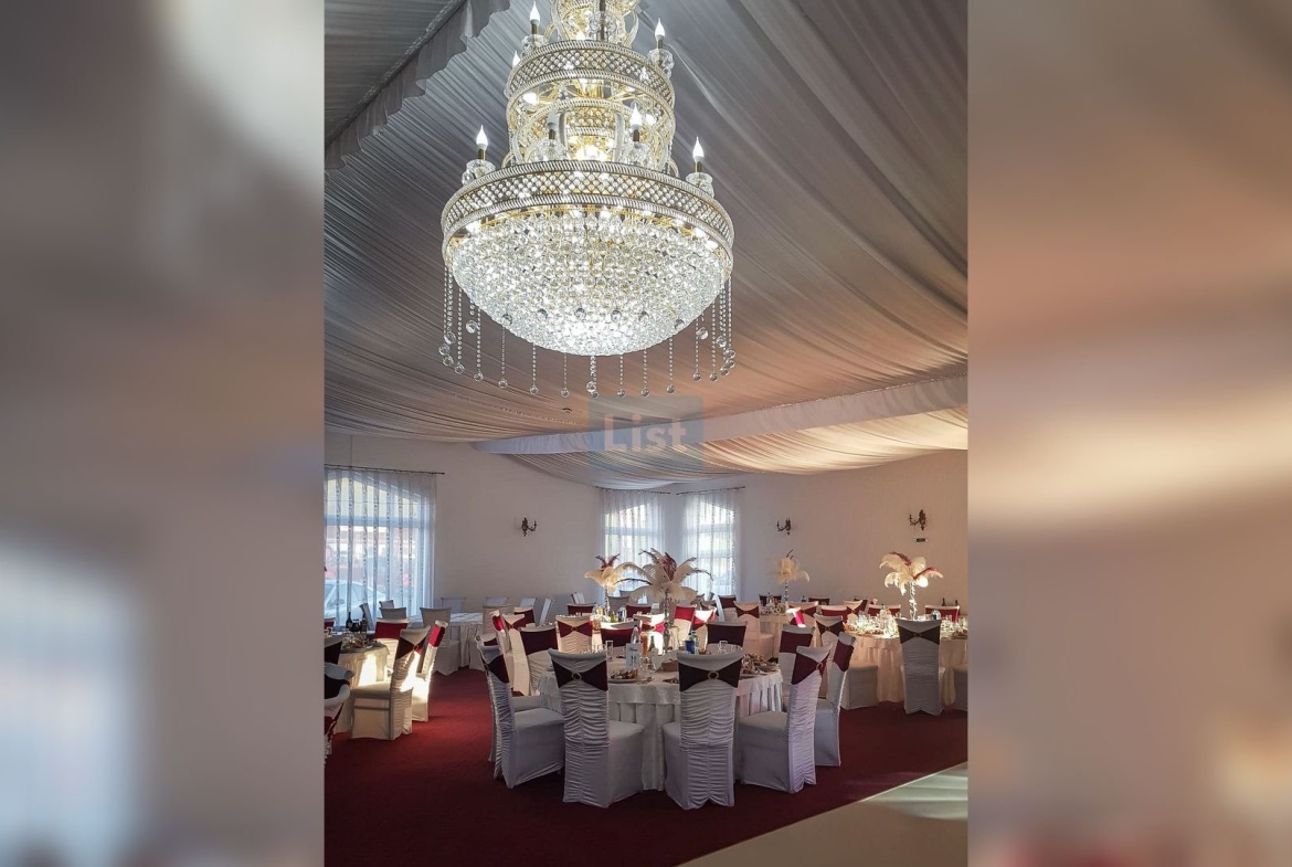 Descoperă o sală de evenimente spațioasă și elegantă, ideală pentru nunți, botezuri, conferințe sau petreceri private, cu o capacitate de aproximativ 450 de locuri.