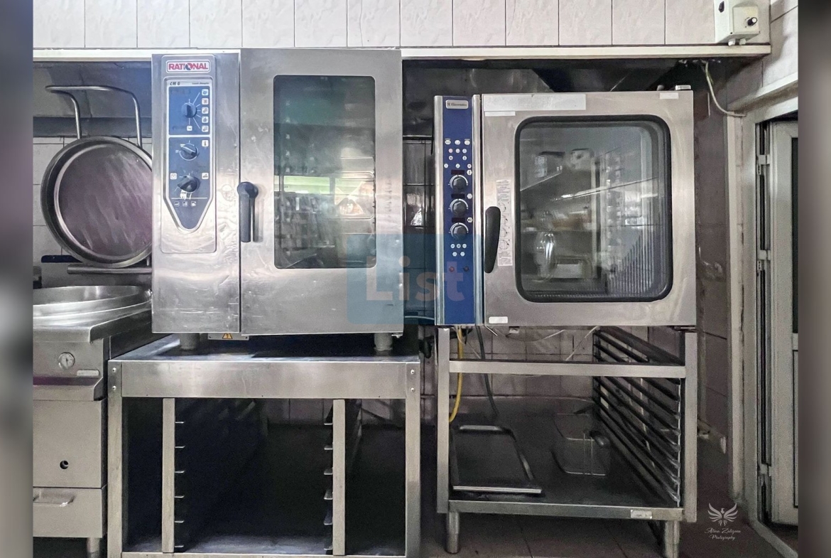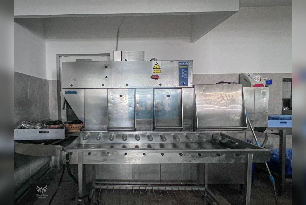 ✔️ Bucătărie profesională complet echipată (cuptoare, marmita, tigaie basculanta, mașină de spălat vase tip tunel)