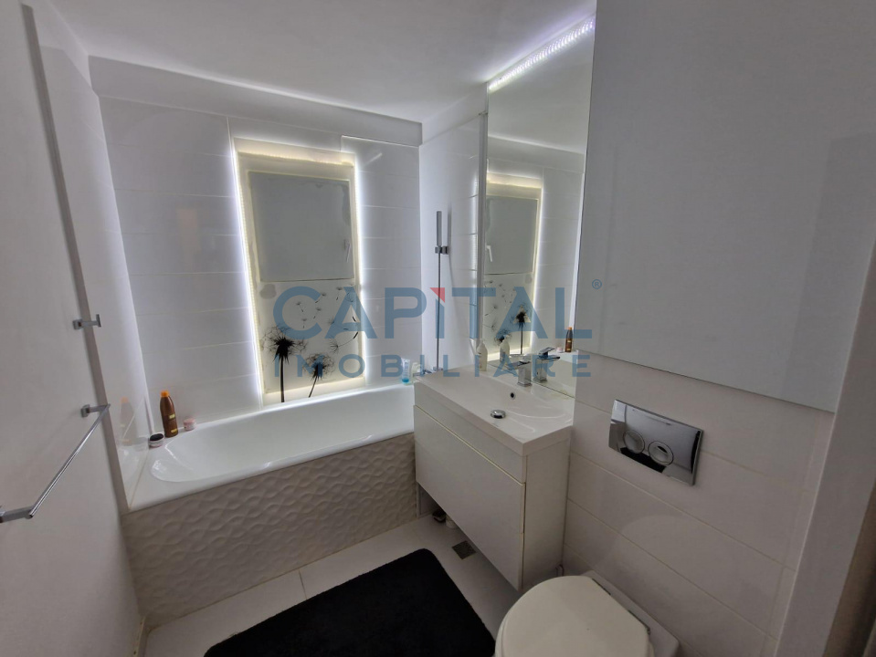 • Alte spatii utile (WC Serviciu, Debara), Bucatarie (Mobilata, Utilata), Mobilat (Complet), Dotari imobil (Interfon), Electrocasnice (Masina de spalat rufe, Frigider, Masina de spalat vase, TV, Hota), Diverse (Sistem de alarma)