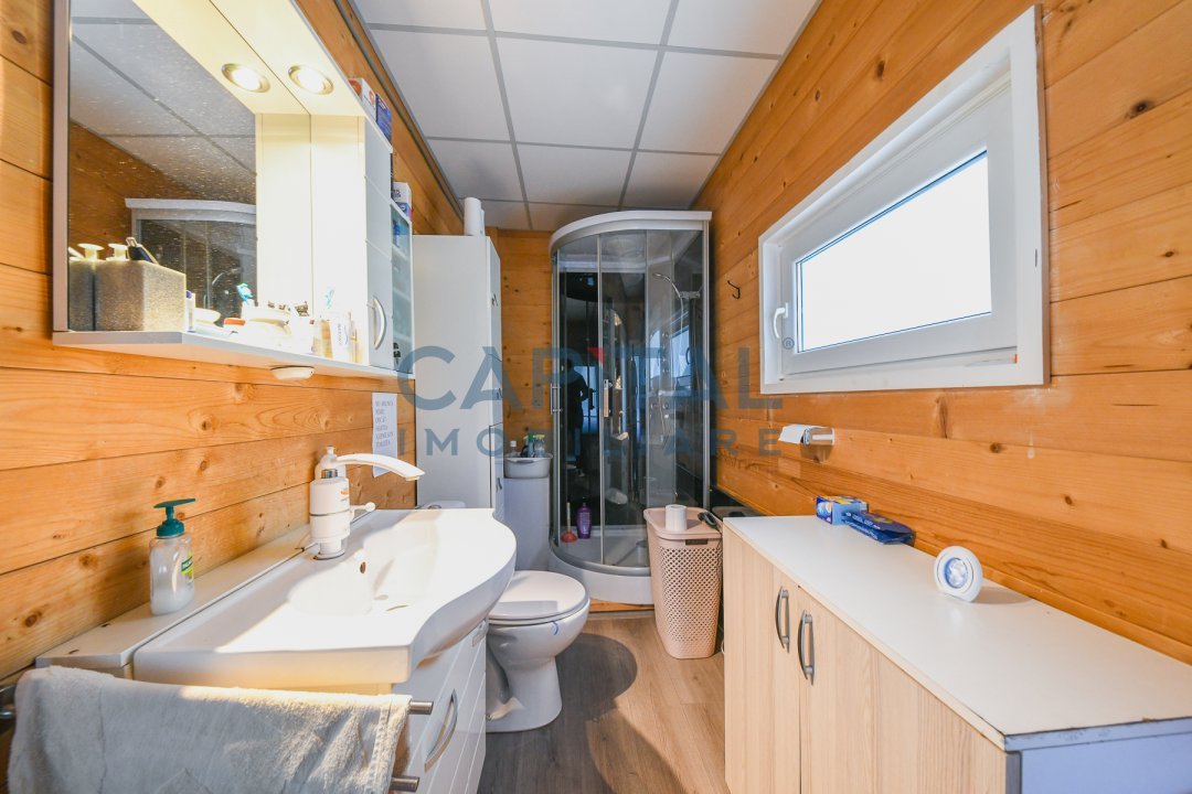 Tot in interiorul minunatei proprietati avem si o casa anexa gospodareasca, in suprafata de 52,4mp utili, compartimentata astfel: bucatarie+living, baie, terasa acoperita.