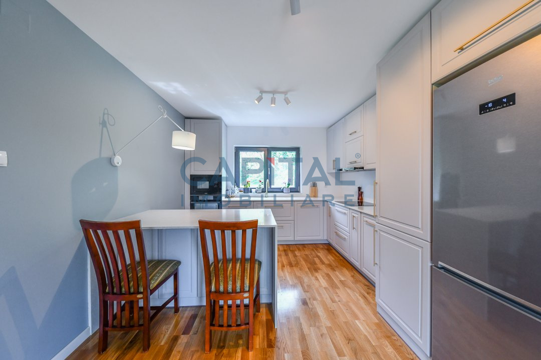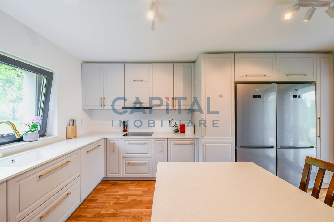 • Alte spatii utile (Pivnita, Spatiu depozitare, Dressing), Bucatarie (Mobilata, Utilata), Contorizare (Apometre, Contor caldura, Contor gaz), Mobilat (Lux), Dotari imobil (Curte, Gradina), Electrocasnice (Masina de spalat rufe, Frigider, Aragaz, Masina de spalat vase, TV, Cuptor microunde), Diverse (Telecomanda poarta garaj, Telecomanda poarta acces auto)