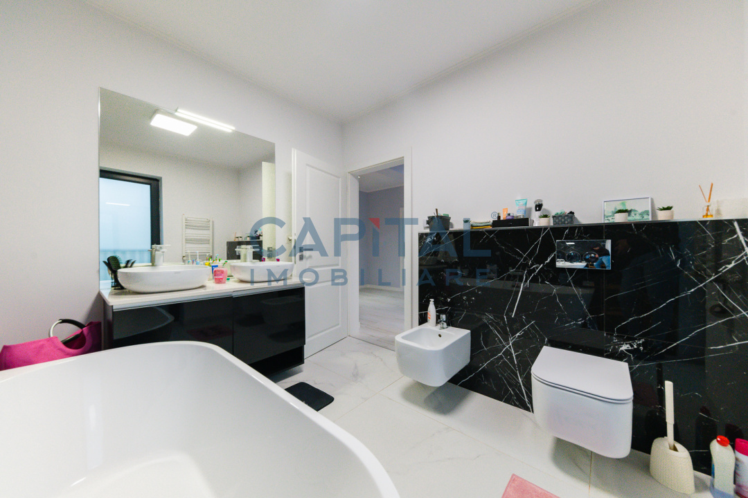 Proprietatea se remarcă prin arhitectura modernă, spațiile generoase și amplasarea într-o zonă liniștită, aproape de natură, dar cu acces facil către principalele puncte de interes din oraș.