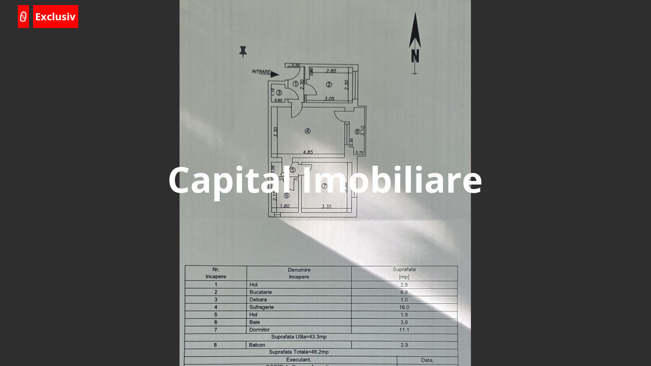 Compartimentare: Semidecomandat, 2 camere, suprafata totala utila 46mp, bucătărie, 1 baie, balcon (3 mp), dormitor, debara pentru depozitare.