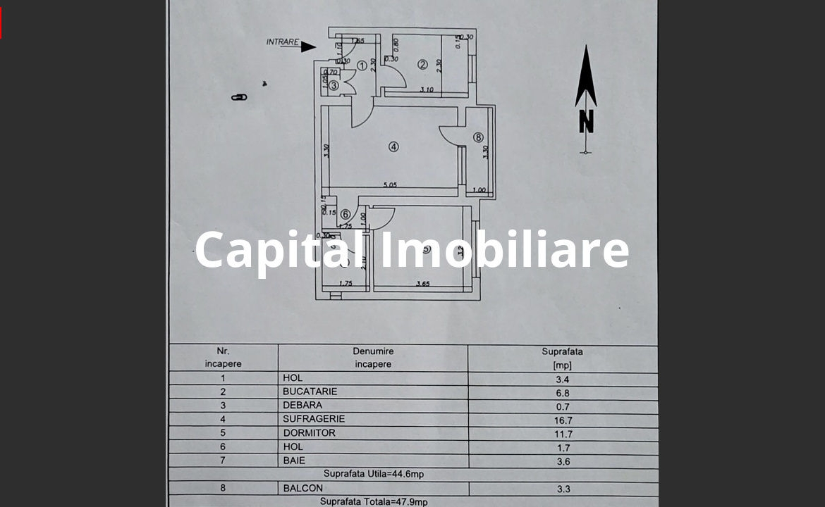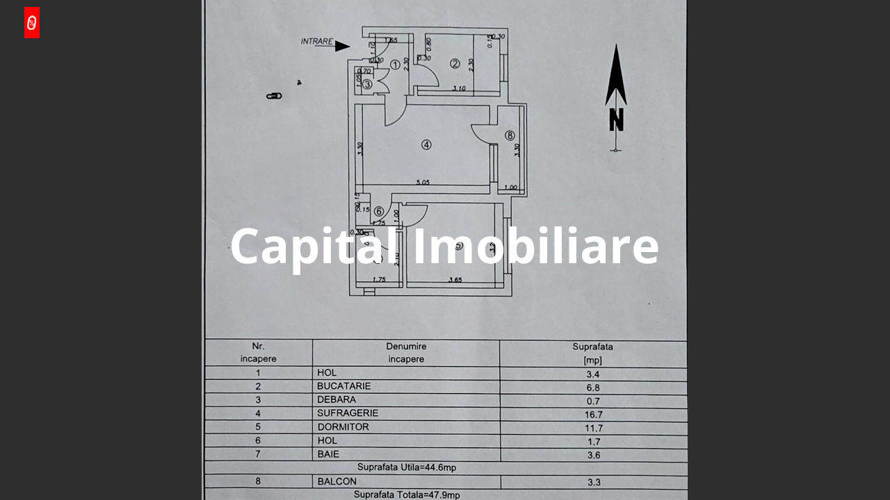Capital Imobiliare vă oferă la vânzare, cu comision 0% la cumpărător, un Apartament cu 2 camere, semidecomandat, cu suprafața utilă de 48 mp, din care 3,3 mp reprezintă balconul.
