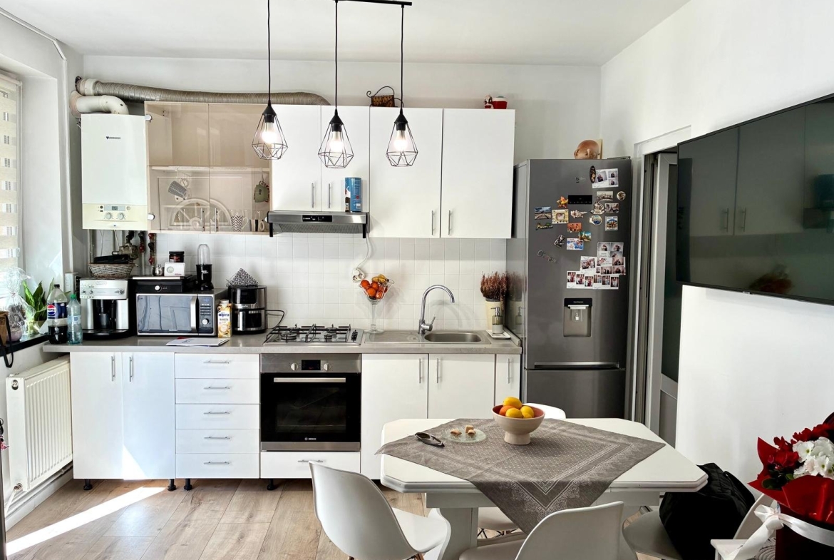 Apartamentul beneficiază și de acces la o curte comună, ideală pentru relaxare. Datorită poziționării centrale, locuința oferă acces rapid la mijloace de transport, magazine, restaurante și alte facilități urbane. Ideal pentru persoane sau cupluri care își doresc să locuiască aproape de centrul orașului.