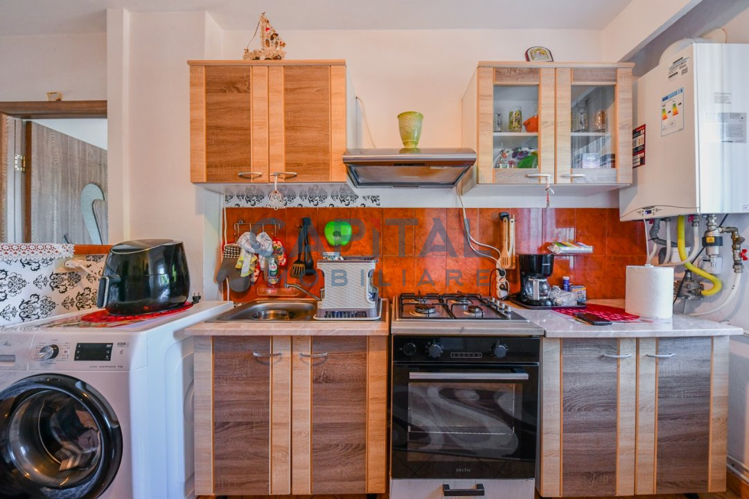 • Alte spatii utile (Boxa la subsol, Debara), Bucatarie (Mobilata), Contorizare (Apometre, Contor caldura, Contor gaz), Mobilat (Complet), Dotari imobil (Interfon)