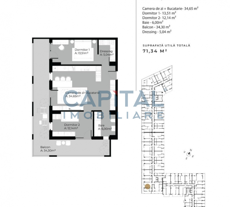 • Suprafață utilă: 71.34 m²