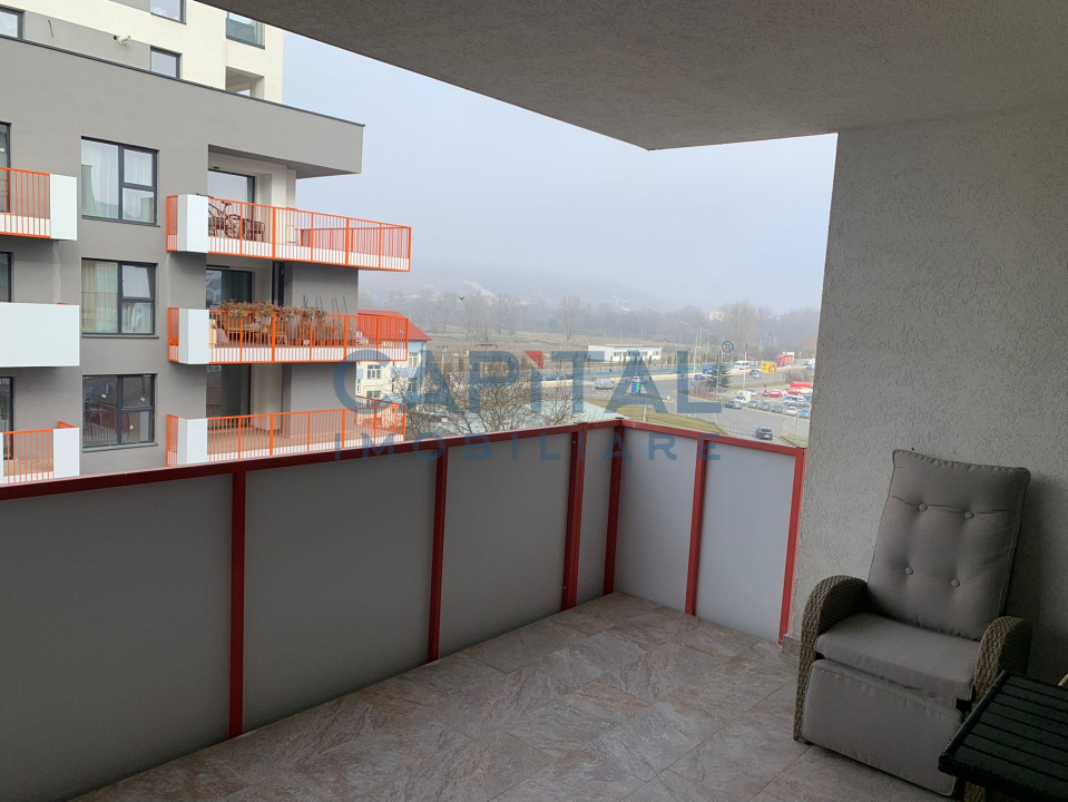 Apartamentul este amplasat la etajul 5 din 8 al unui imobil construit în 2022, dotat cu lift, și are o suprafață utilă de 54 mp, la care se adaugă un balcon generos de 14 mp.