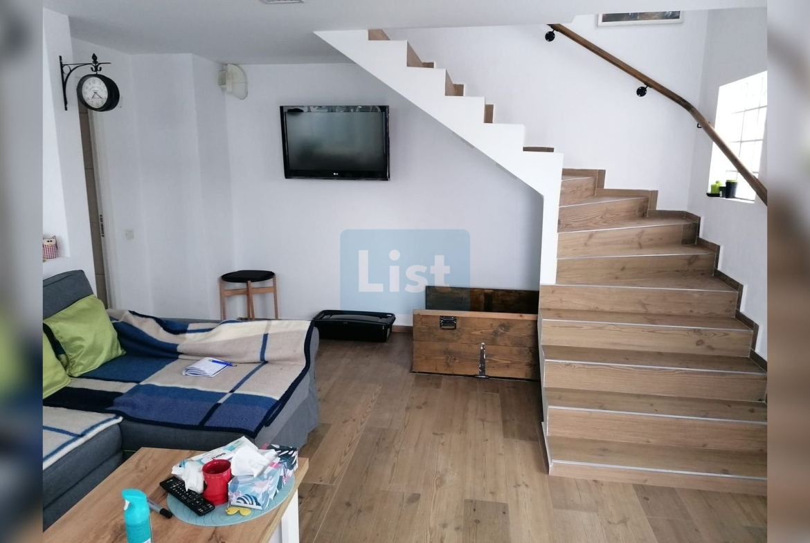 Capital Imobiliare vă propune spre vânzare fără comision un apartament tip duplex, modern finisat, avand următoarele caracteristici : este situat pe un teren de 220 mp, suprafața construita desfășurată 220,80 mp,frontul casei 15 m, cu suprafața construita de 84,40mp, suprafața utila 78 mp, construit în regim de S+ P+E1+M. Apartamentul detine 1 subsol cu functii tehnice (1 centrală termică) cu scară acces, la parter găsim 1 living cu bucătărie open space, 1 cămară, 1 baie, 1 hol cu scară acces spre etaj unde gasim 1 camera, 1 dormitor cu iesire pe tersa, 1 baie, 1 scară rabatabila pentru accesul în pod.