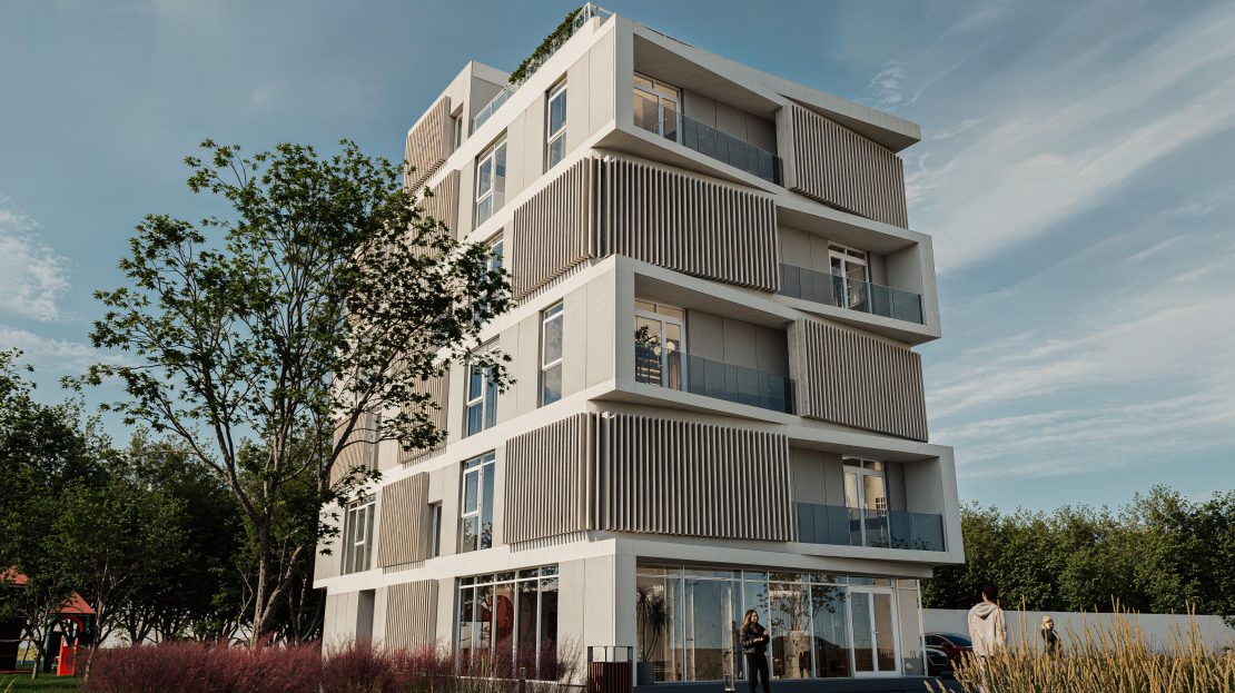 Eficiență energetică: Fațadă ventilată (costuri reduse de întreținere) și termoizolație cu vată bazaltică de 15 cm.