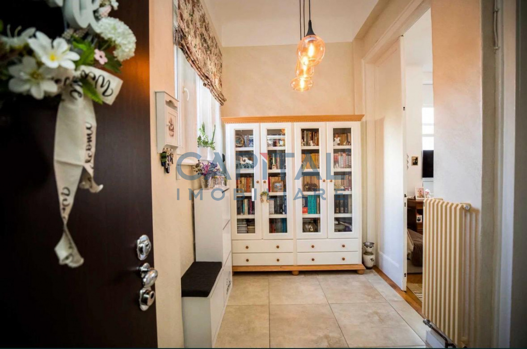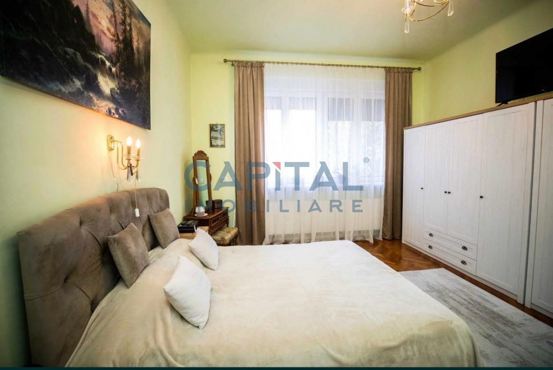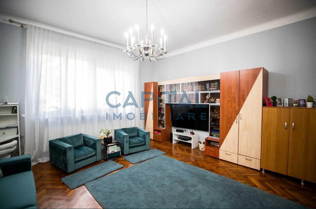 Capital Imobiliare propune spre vanzare un apartament cu o suprafata utila de 110mp, pozitionat la parterul unui imobil cu 2 nivele, situat in zona centrala a orasului, in apropiere de Piata Avram Iancu. Locuinta dispune de compartimentare semidecomandata: 2 holuri, 2 dormitoare, baie cu geam, living cu bucatarie. Confortul termic este asigurat de centrala termica proprie. Proprietatea detine cota parte din din curte cu loc de relaxare, cota parte din pod, gataj propri.