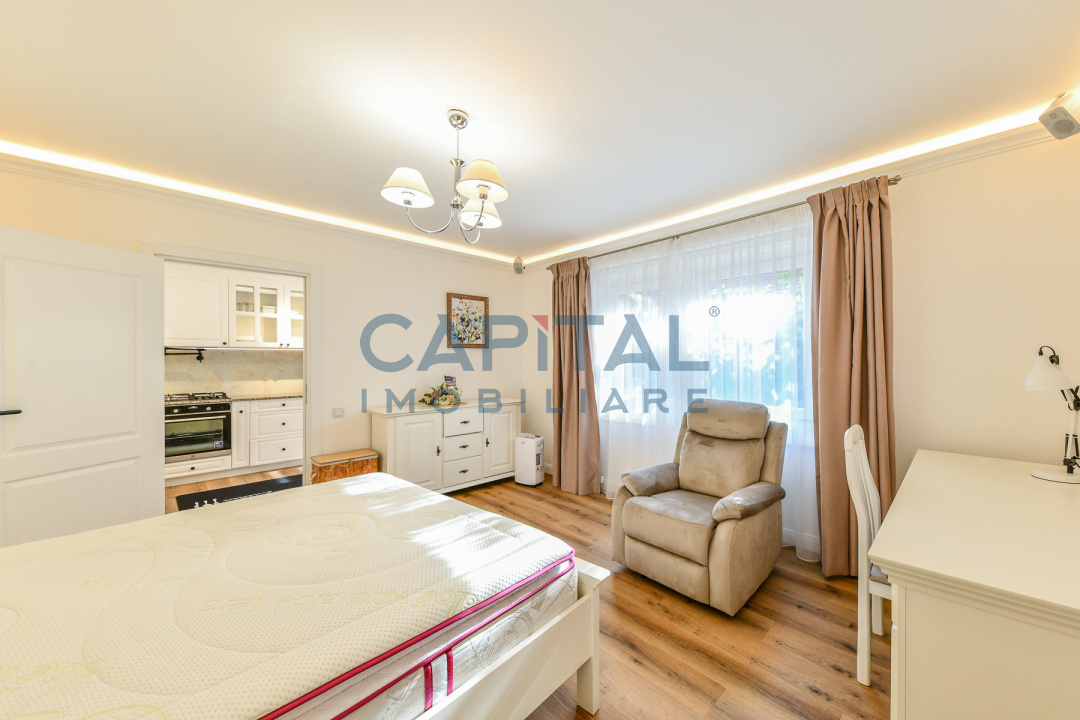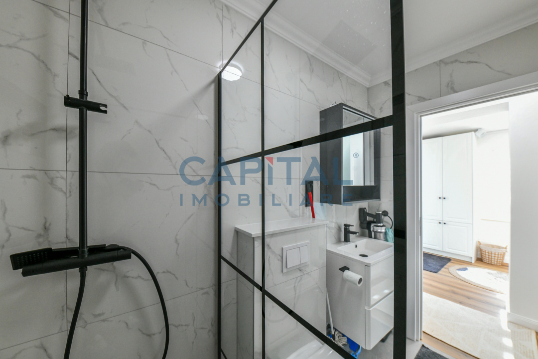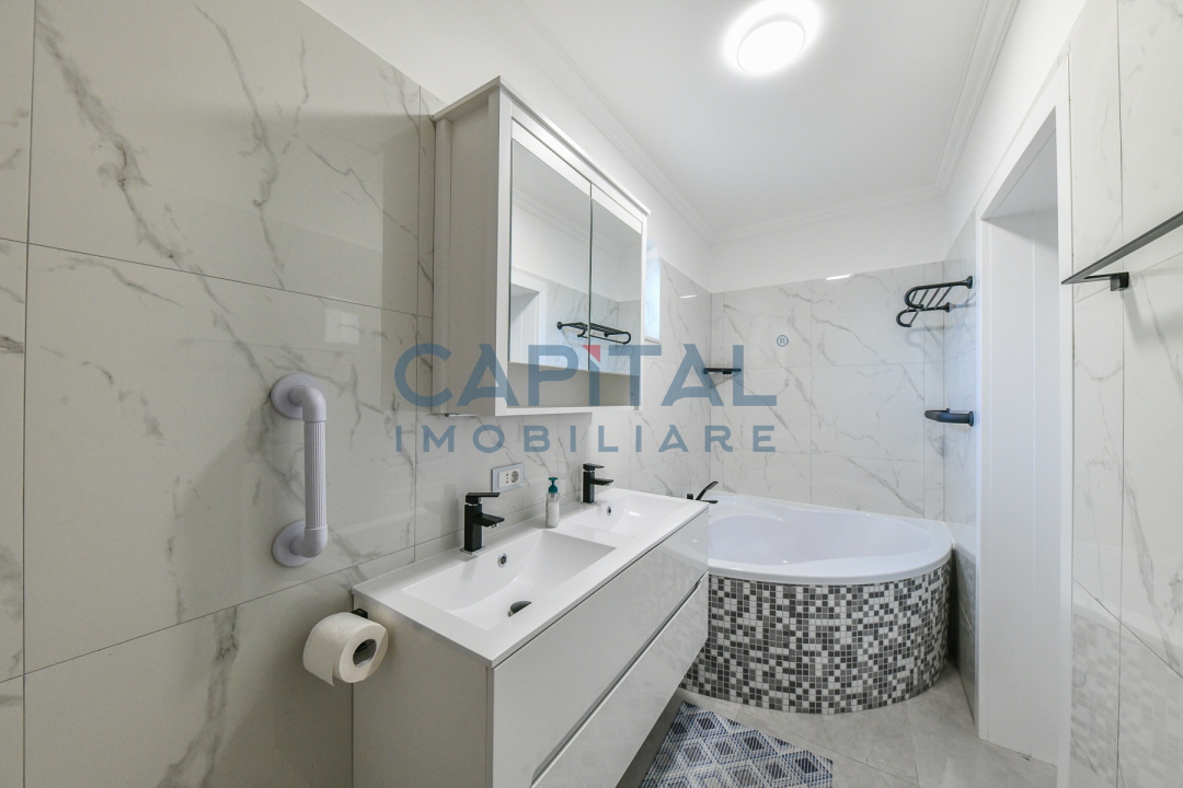 Capital Imobiliare va propune spre vanzare, fara comision din partea cumparatorului, o casa cocheta total renovata, interior si exterior, acoperisul nou, curte amenajata. Locuinta are o suprafata de 100 mp, cu teren de 250 mp, este stucturata pe 2 niveluri – parter si pod amenajat pentru depozitare, birouri, sau alte activitati. Parterul casei este compartimentat in – bucatarie, 2 dormitoare, birou (living), 2 bai , locuinta se vinde complet mobilata si utilata conform pozelor. Va astepam cu drag la vizionare.