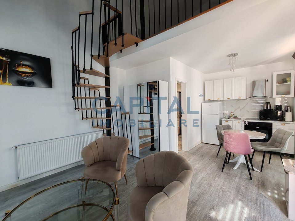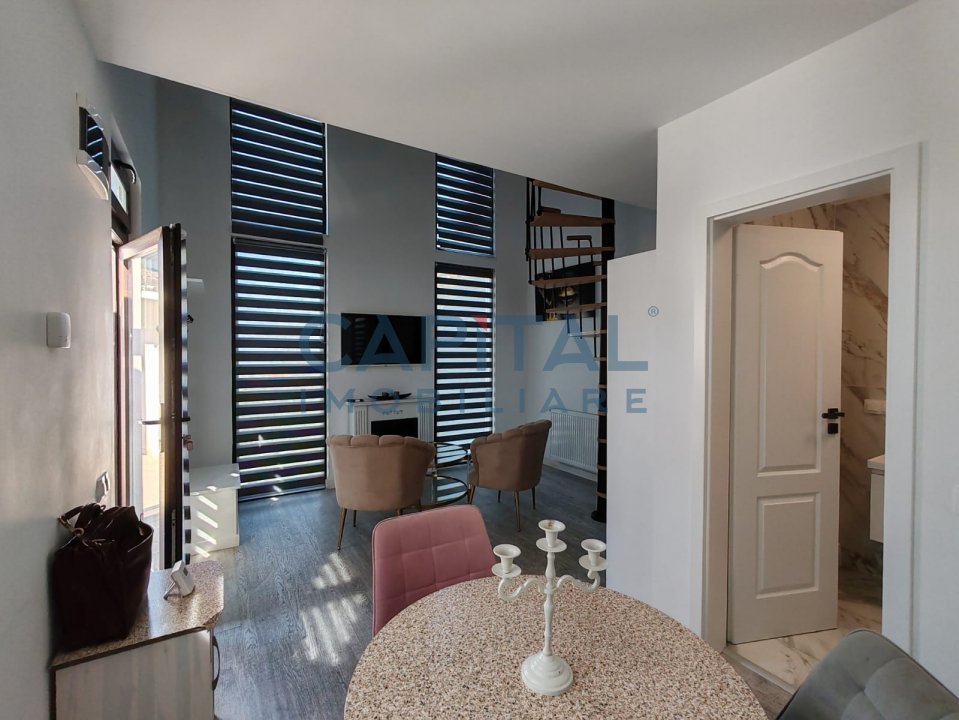 – parter: camera de zi generoasa cu acces la terasa de 42mp, camera(birou), bucatarie cu loc de servit masa, hol si baie