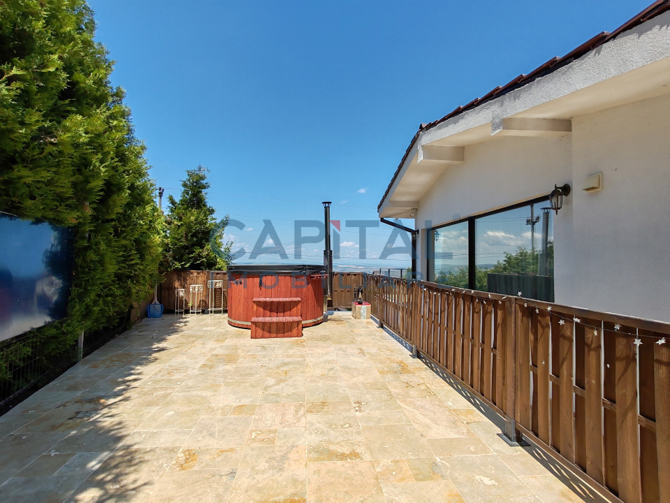 Proprietatea detine curte frumos amenajata cu pomi decorativi si fructiferi. Ofera o panorama deosebita asupra orasului. Mijloacele de transport in comun se afla la 3 minute distanta de mers pe jos.