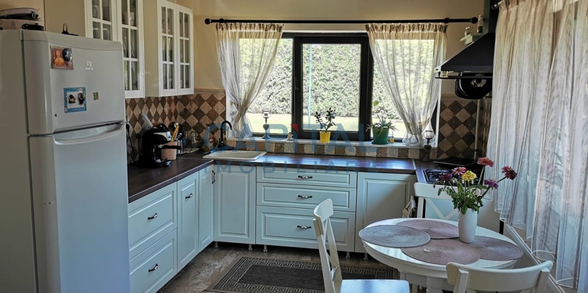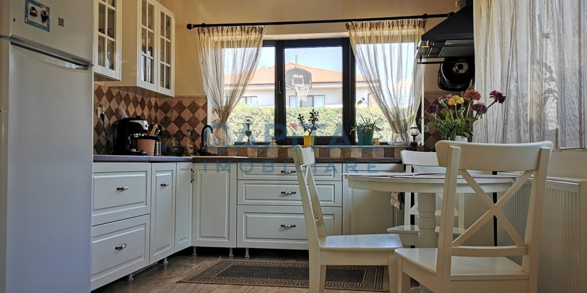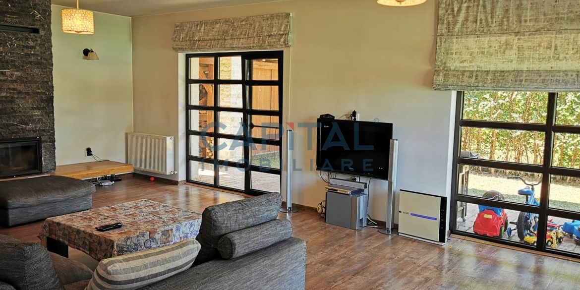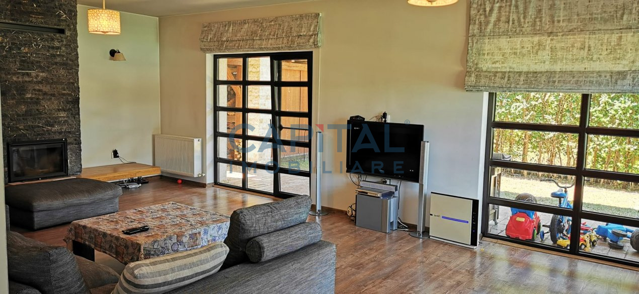 Casa a fost construita din caramida Porotherm de 30 cm si izolatie de 10 cm. Incalzirea casei este prin centrala proprie cu calorifere, are si un semineu in living. Proprietatea se preda mobilata si utilata cum se vede si in poze, fara obiecte personale.