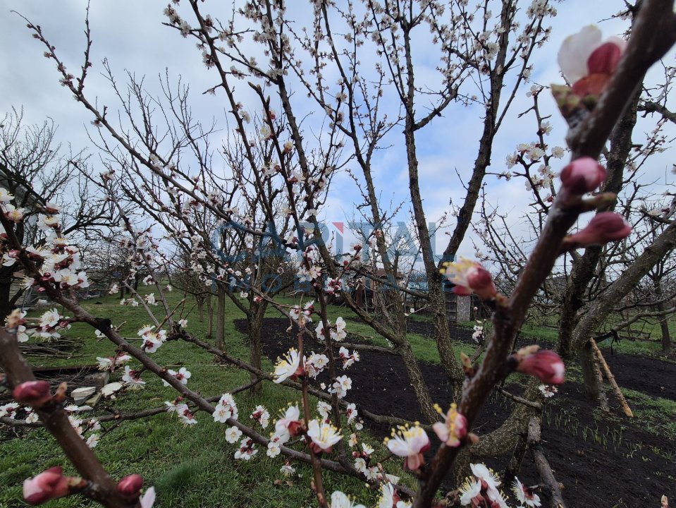 Livada este amenajata cu pomi fructiferi maturi si cu o anexa folosita pentru depozitare.