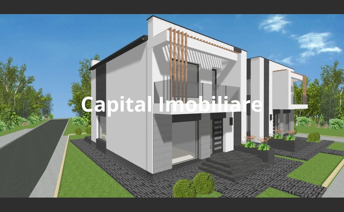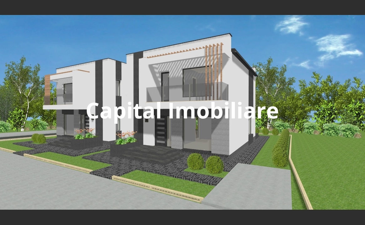 In randare apar 2 constructii, deoarece sunt facute 2 una langa alta , in oglinda, fiecare cu 240 mp de teren; nu este duplex, si nici curte comuna.
