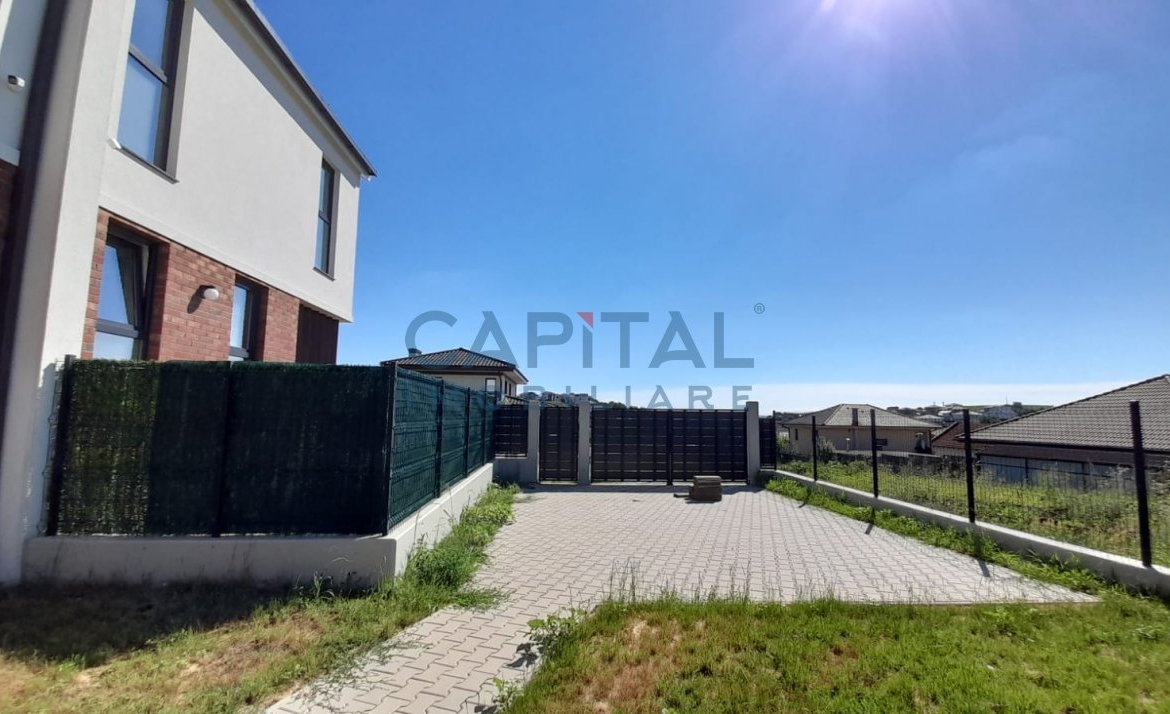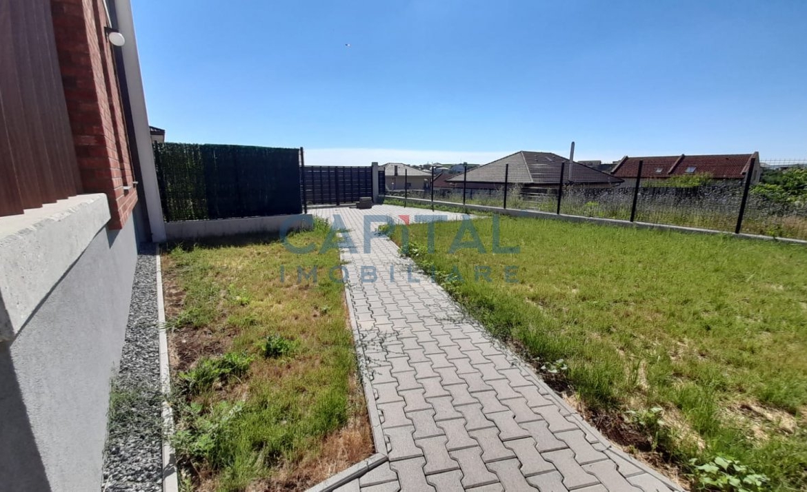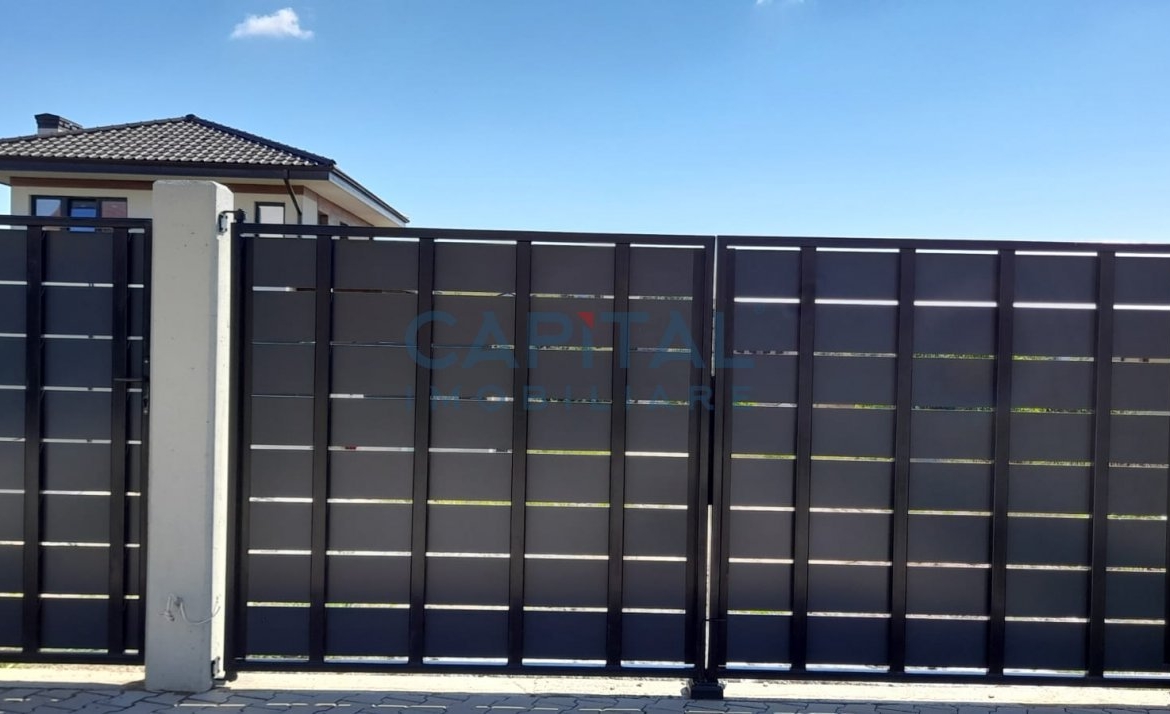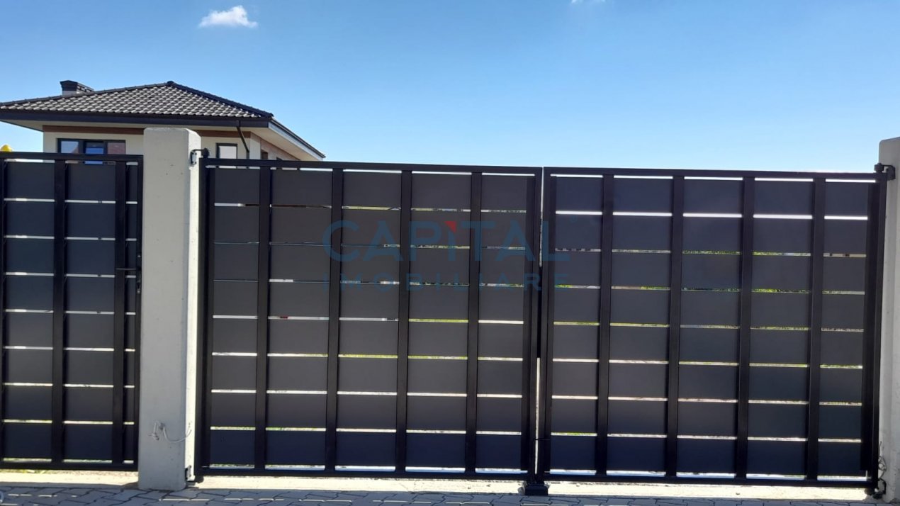 Casa este acoperita cu tigla, tamplaria este din PVC cu tripan, ingradirea este realizata prin garduri pe fundatie de beton si poarta actionata electric.