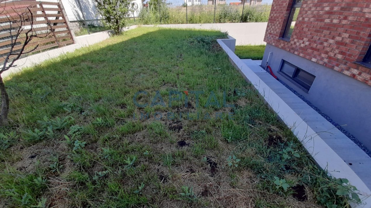 Curtea si gradina sunt amenajate cu trotuare, gazon, arbusti ornamentali, spatii de parcare pavate.