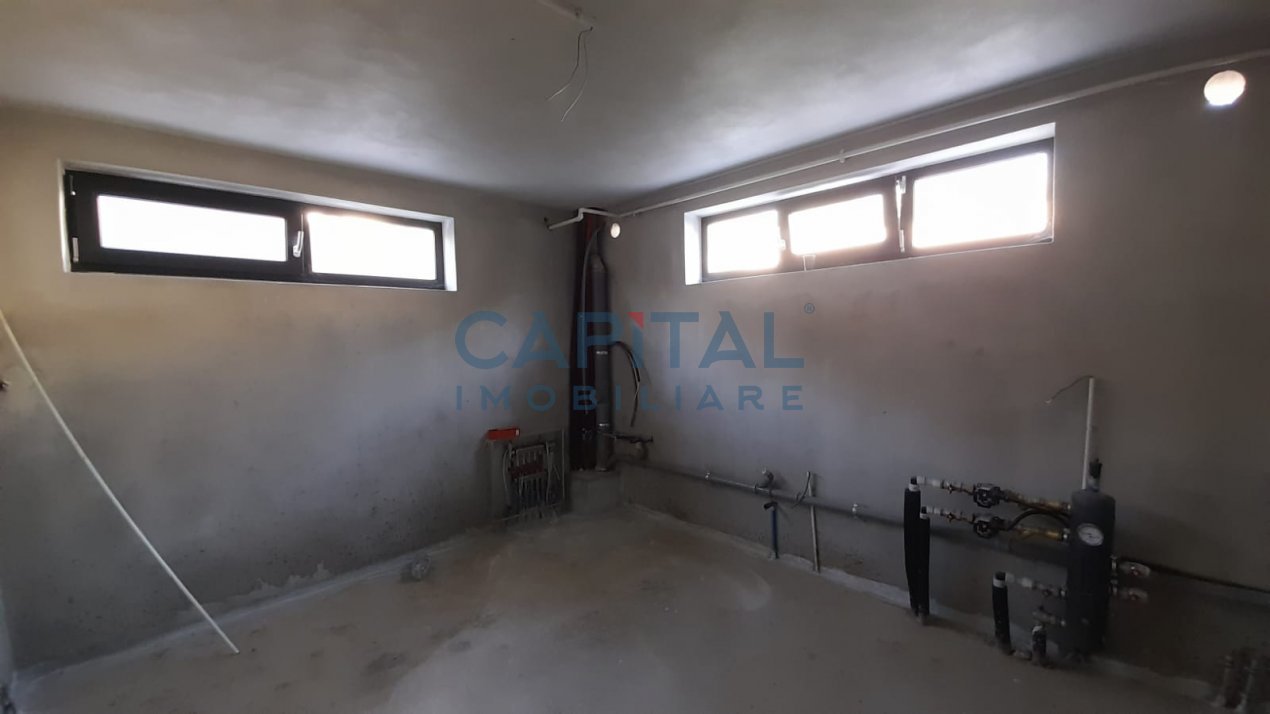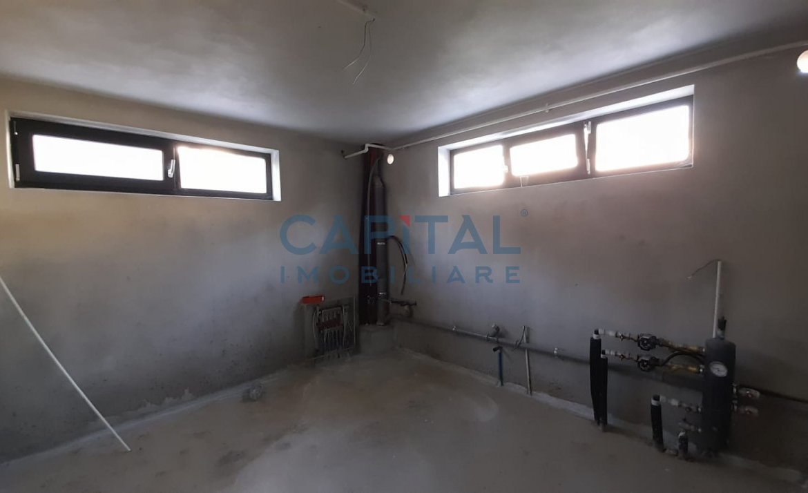 La demisol exista trei spatii generoase, baie, si o camera tehnica.