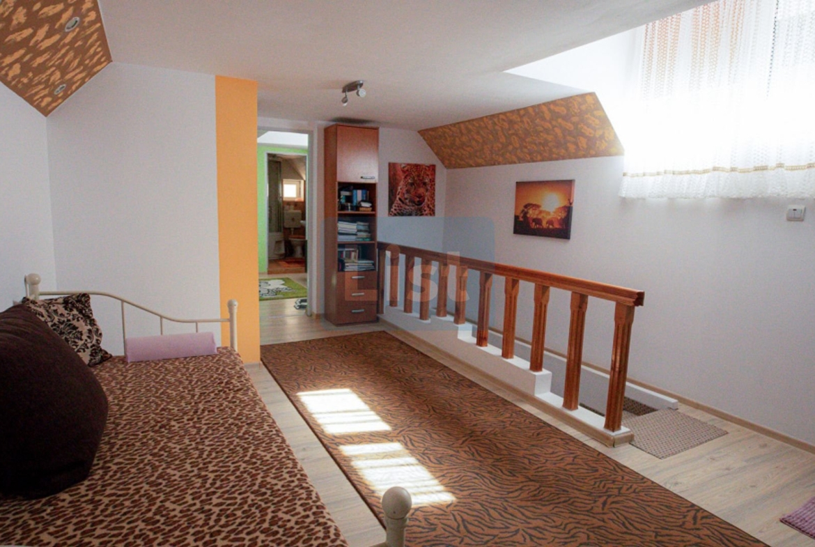 List imobiliare va propune spre vanzare o casa cu etaj aproape de centrul orasului, potrivita pentru 2 familii, partial mobilata si utilata. Caracteristici specifice: Spațiu generos; Casa are spații ample, atât în zona de zi cât și în zona de noapte, pentru a oferi confort in orice moment. Casa are 7 camere , 4 bai , 2 bucatarii, 2 garaje, camera tehnica si alte dependinte foisor, zona de gratar, piscina exterioara , sauna, terasa acoperita si gradina mare cu pomi fructiferi, un design modern, cu finisaje de calitate și o estetică atrăgătoare, care completează atmosfera de lux. Este situata pe o strada linistita, cu acces facil, in spatele casei se afla padure. Confortul termic este oferit de centrala pe gaz cu instalatie de cupru si are si centrala pe lemne functionala. Casa are 2 intrari separate. Pentru mai multe detalii va rog sa ma contactati, pretul este negociabil si Comision 0% la cumparator!!!