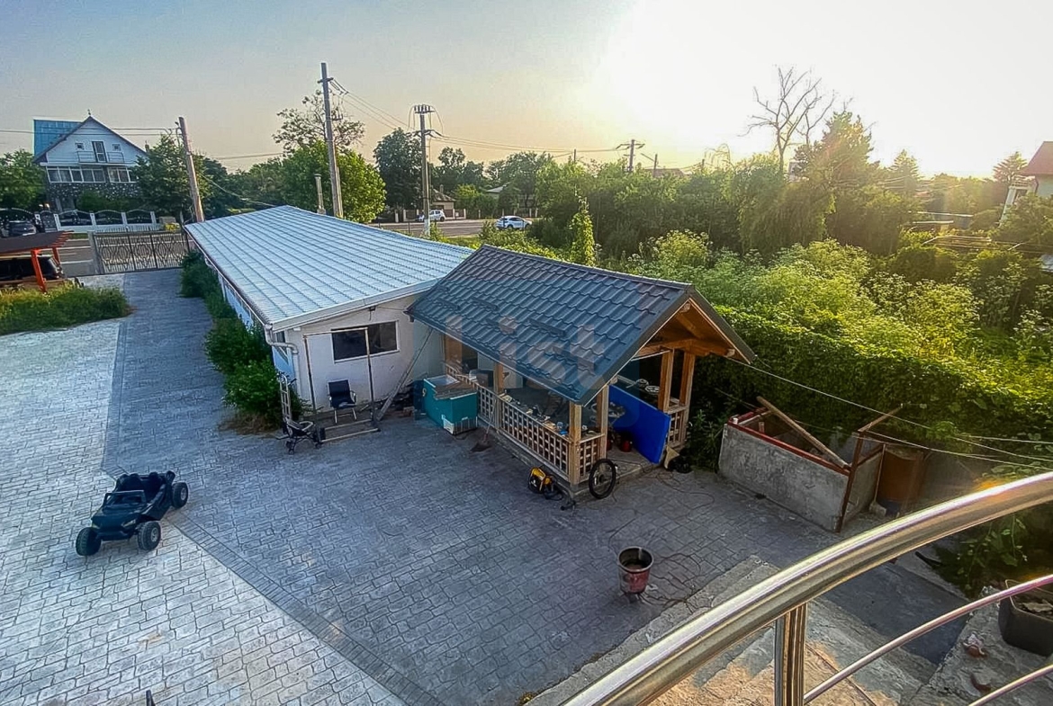 De asemenea, are curte ,o hala ce poate servi a restaurant sau spatiu comercial si iesire la drumul principal ,Calea Bucuresti.