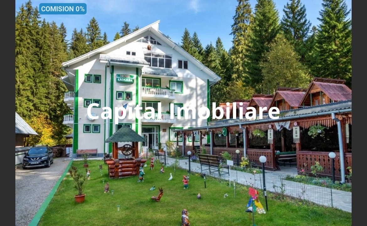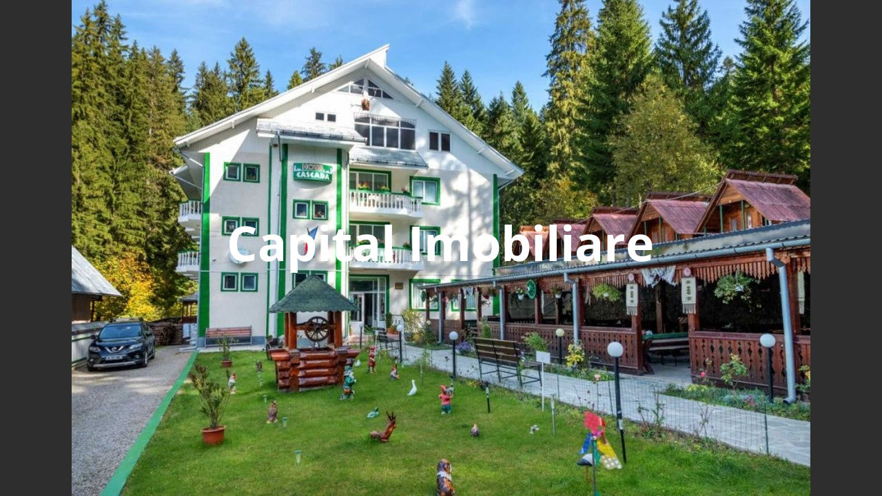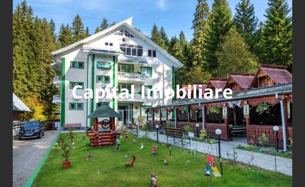 List presents a unique opportunity to own a turnkey business in a storied location. The Cascada Hotel, located in the suburbs of the Ceahlău commune, in the Durău resort at the foot of the Ceahlău Massif, is the starting point for all the attractions of the area such as the ski slope, the Ceahlău Natural Reserve, the Duruitoarea trail and the Cabana Fântânele trail. This special property is composed of P+2E+M, with a built area of ​​351 sqm, the developed area is 1404 sqm and the related land is 2300 sqm. Hotel Cascada is classified as 3 stars and has 2 apartments with 4 beds, 24 rooms (18 sqm) with 2 beds equipped with cable TV, internet, refrigerator, balcony, matrimonial bed, private bathroom, as well as non-stop heating agent . The hotel restaurant has 100 seats, and the daytime bar has 20 seats. Outside, the rustic terrace has 120 seats. 5 camping houses with 2 places. Also, on the property there is an annex with a total area of ​​443 sqm, consisting of a laundry room, storeroom, 2 staff rooms and 2 toilets, 1 30 sqm cellar with a gazebo above, 1 wood shed, 1 wood-burning boiler. Relaxing walks can be done through the forest, or on the green space inside the rustically decorated hotel, with a total area of ​​125 square meters. The property has its own parking lot with 30 spaces. For further details do not hesitate to contact us.