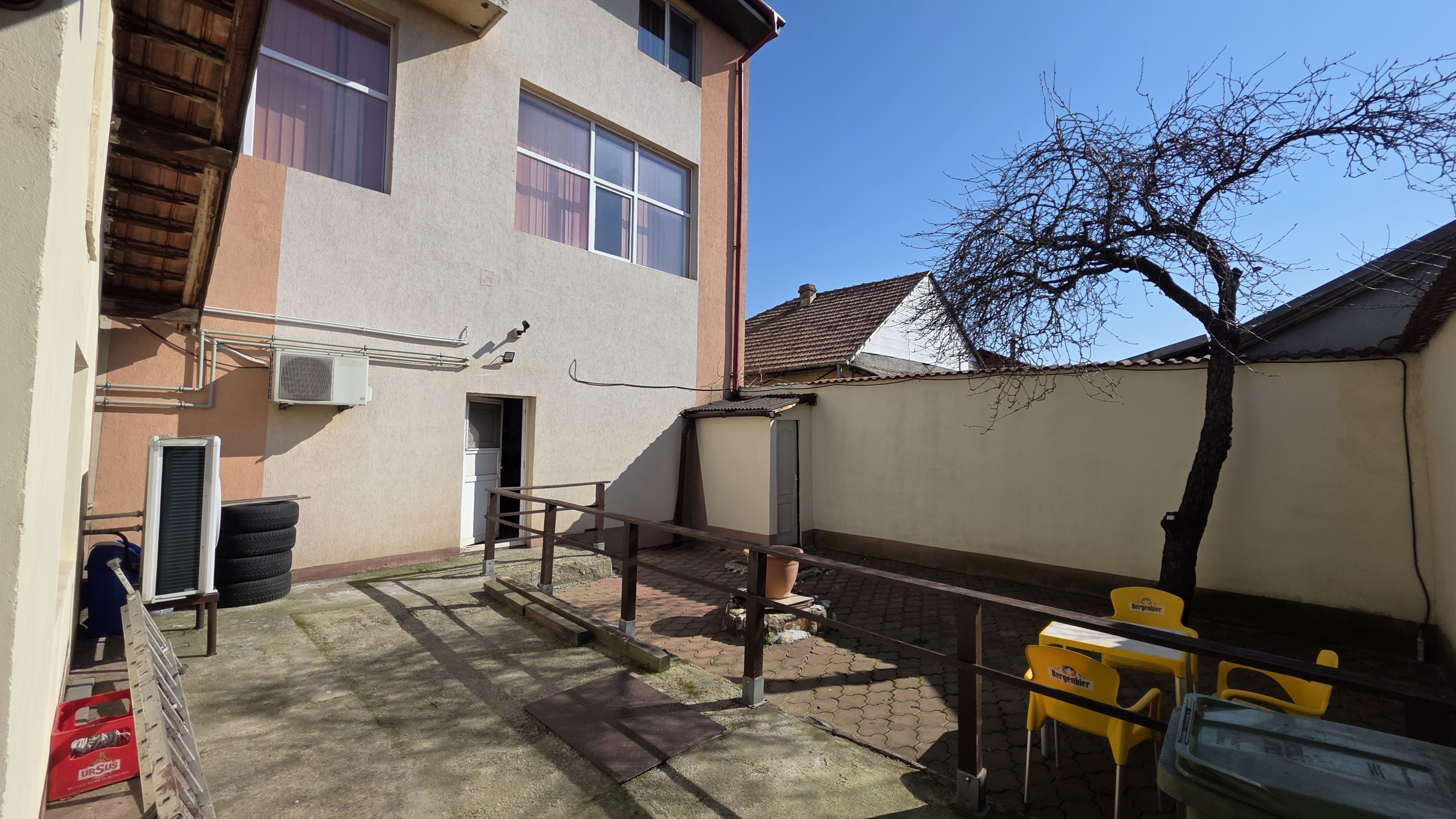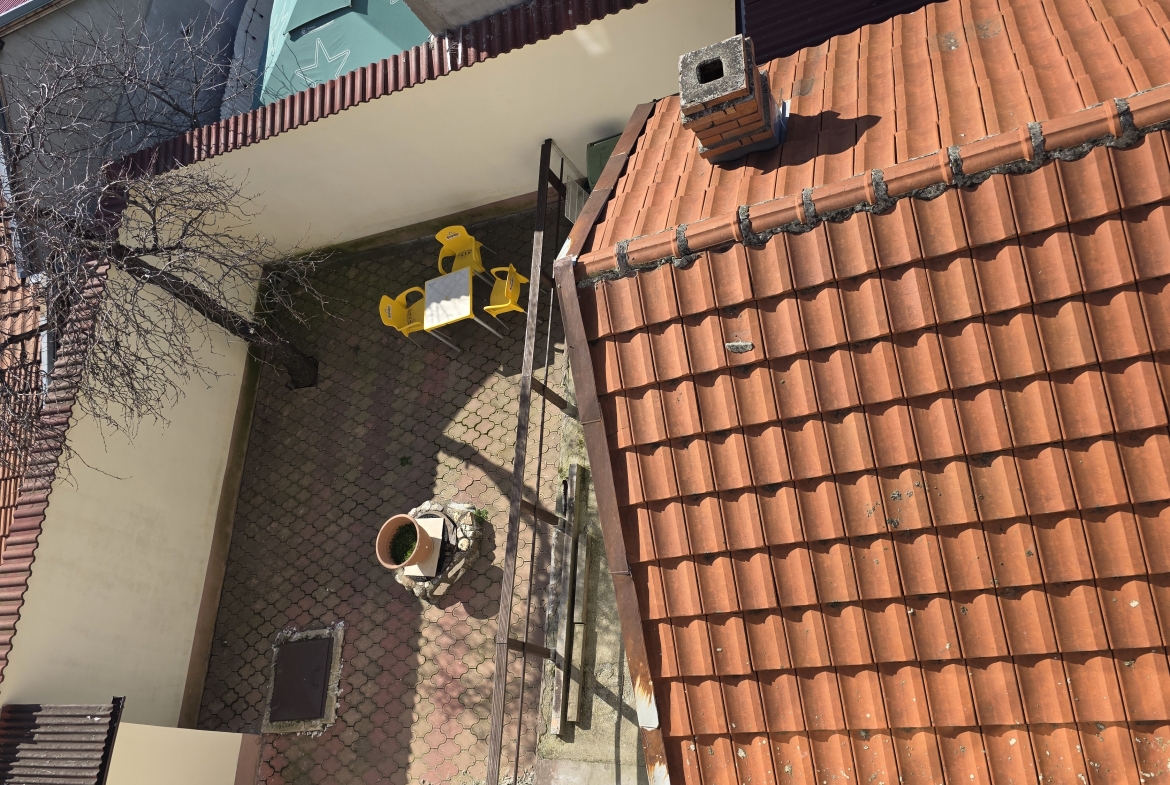 Accesul către etajul 1 și mansardă se face pe o scară separată, independentă de spațiile comerciale de la parter, ceea ce permite utilizarea eficientă a clădirii pentru activități mixte.