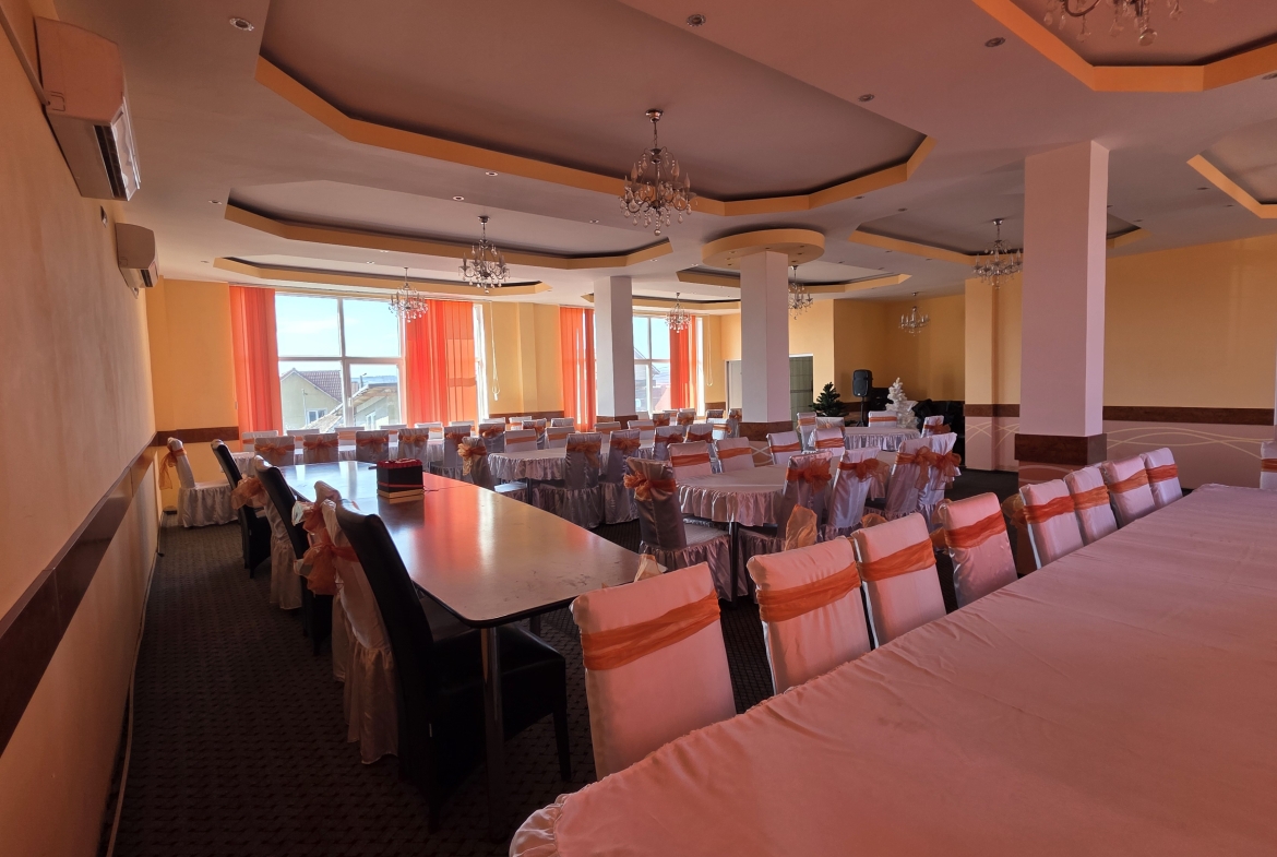 Etajul 1 – sală de evenimente, două grupuri sanitare, bucătărie.