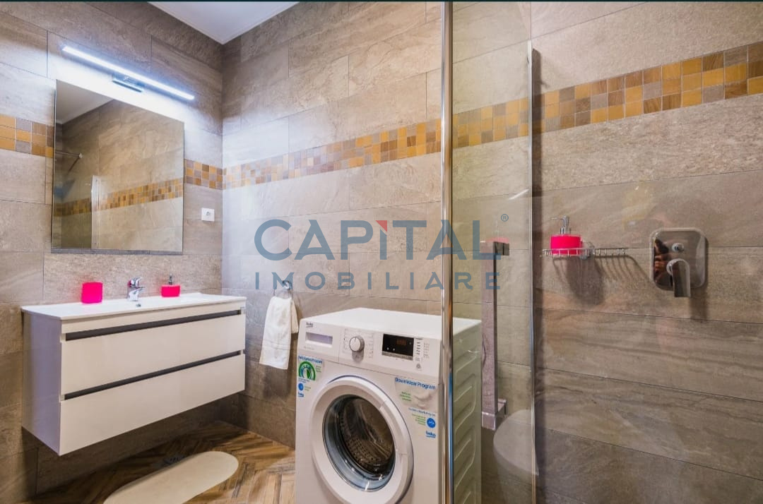 Capital Imobiliare va propune spre vanzare, fara comision din partea cumparatorului, un apartament cu 2 camere, pozitionat la etajul 4 intr-un imobil cu 6 etaje, situat in cartierul Manastur zona USAMV. Locuinta este una semidecomandata, cu suprafta utila de 52 mp, compusa din- hol intrare, 1 dormitor, 1 living, 1 bucatarie 1 logie, 1 baie. Confortul termic este asigurat de centrala ternica proprie, incalzirea se face prin pardoseala. La cerere se poate achizitiona 1 loc de parcare la subsolul imobilului la pret de 15 000 euro. Locuinta se vinde mobilata conform pozelor. Va asteptam cu drag la vizionare.