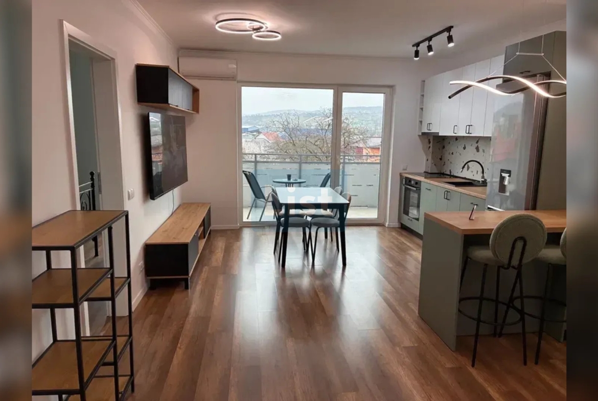 • Living open-space cu zonă de dining și bucătărie complet echipată