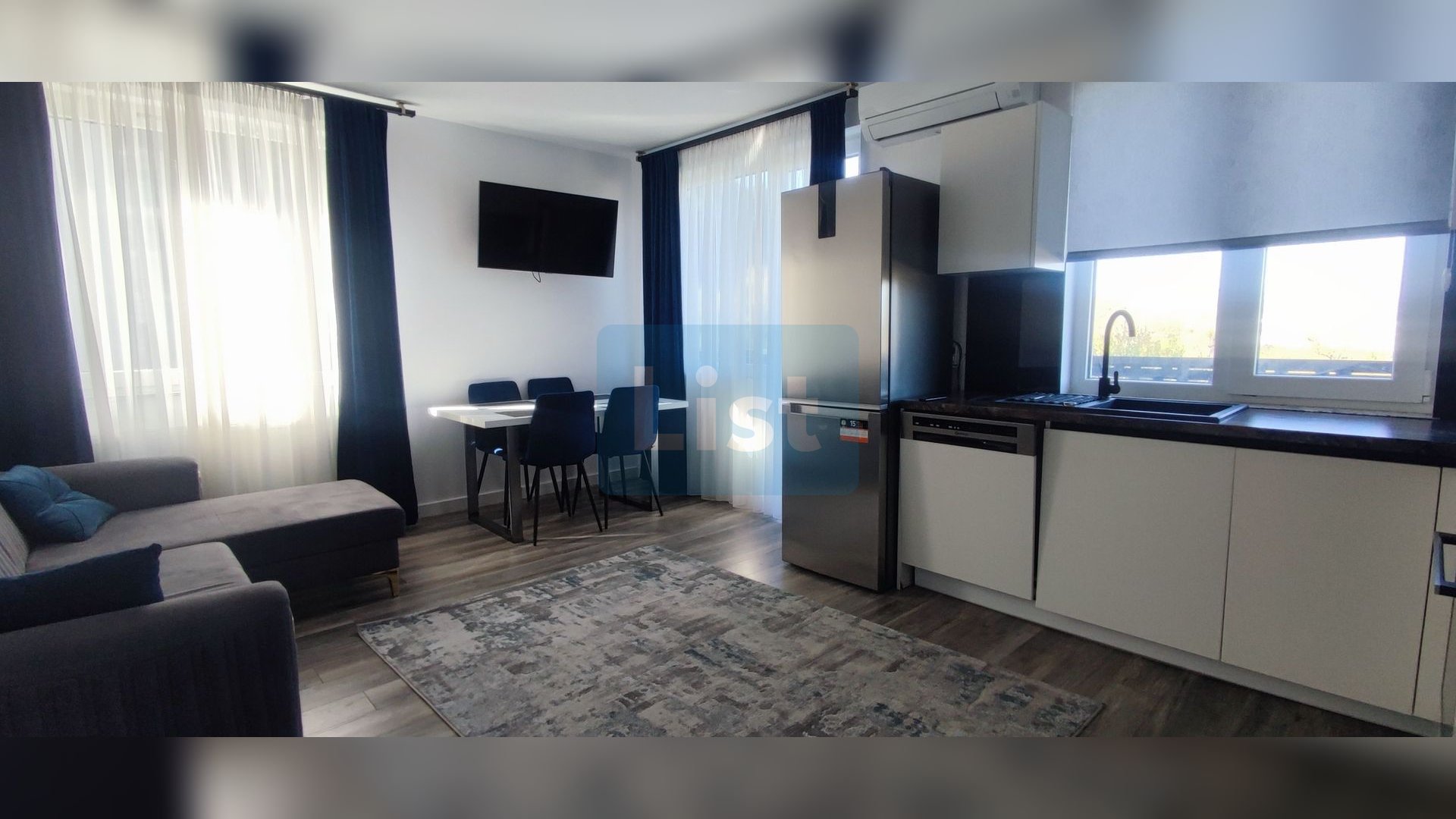 • Living cu bucătărie open-space, complet utilată și mobilată