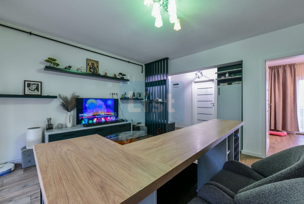 Apartamentul este semidecomandat iar compartimentarea este urmatoarea: