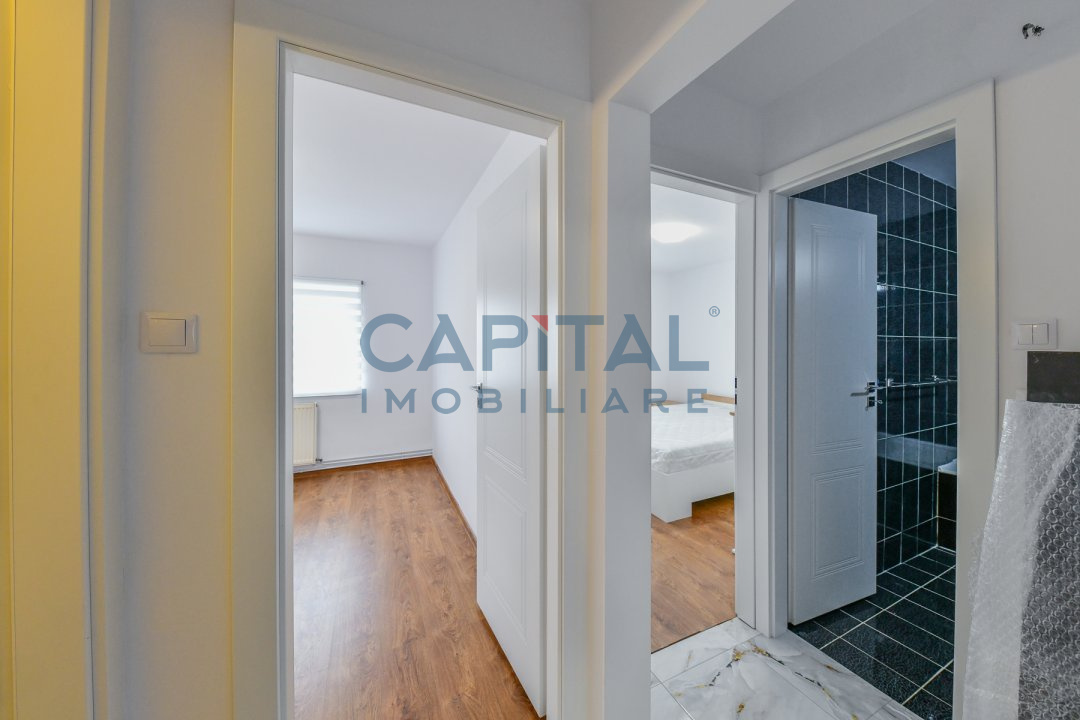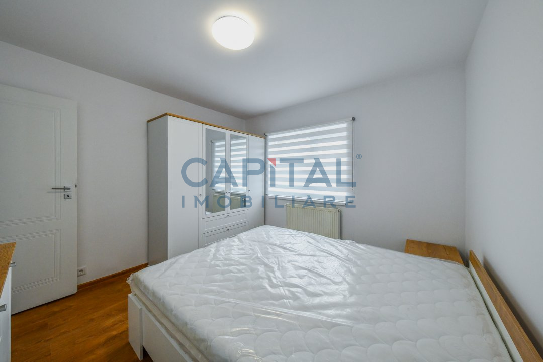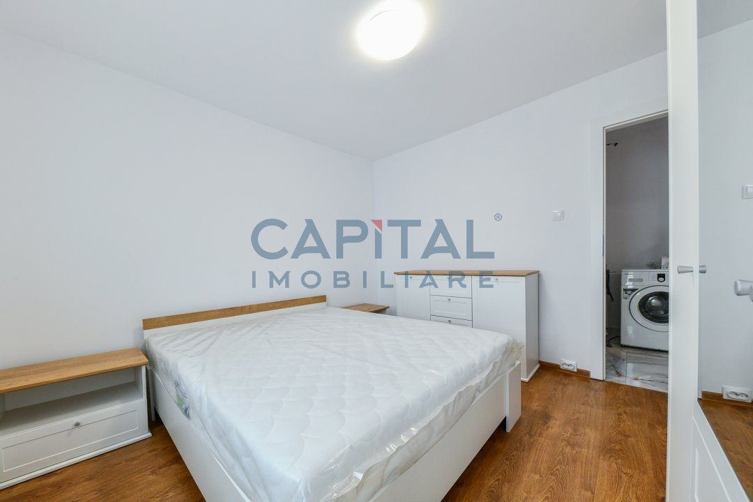 Apartamentul are o suprafata utila de 68 mp, fiind compartimentat in 2 dormitoare, 1 living, bucatarie si 2 bai, plus un balcon de 6 mp. Unul dintre dormitoare nu este mobilat, deoarece se va finaliza la cererea chiriasului. Absolut totul din apartament este nou, de la parchet, mobila, draperii, pana la centrala, tevi si instalatii. Prima inchiriere!