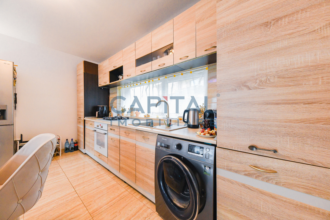 • Alte spatii utile (Boxa la subsol), Bucatarie (Mobilata), Contorizare (Contor gaz), Mobilat (Complet), Dotari imobil (Interfon), Electrocasnice (Masina de spalat rufe, Frigider, Aragaz, TV, Hota)