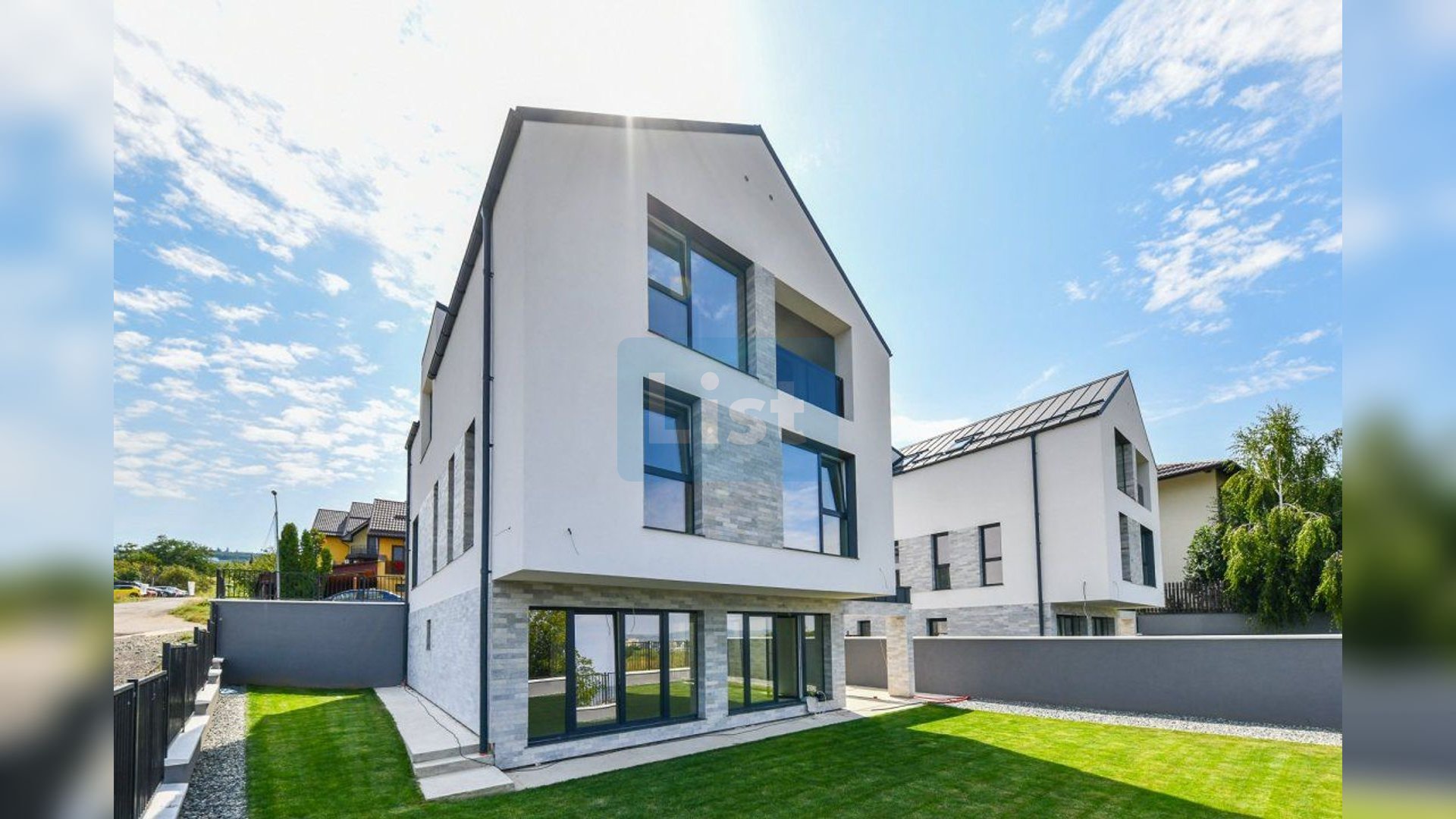 Suprafata constructiei este de 220 mp utili, pe un teren de 400 mp. Curtea este amenajata cu gazon iar in fata proprietatii casa dispune de 3 locuri de parcare