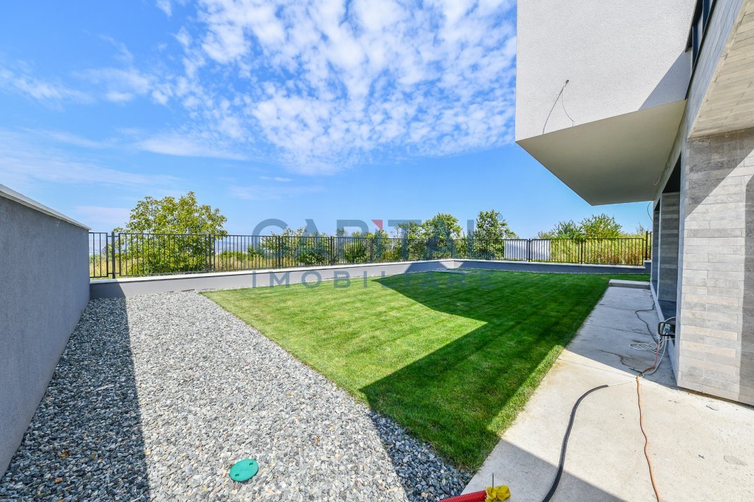 Suprafata constructiei este de 220 mp utili, pe un teren de 400 mp. Curtea este amenajata cu gazon iar in fata proprietatii casa dispune de 3 locuri de parcare