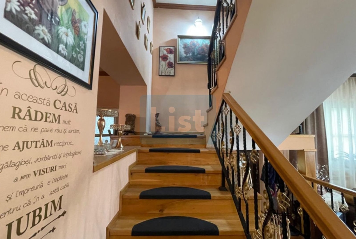 List Imobiliare va propune spre vanzare o casa individuala, aproape de Centrul Istoric, la 20 de minute de mers pe jos si la 14 minute de Lacul Binder! Casa este compusa din: Demisol: doua camere (pivnite), loc pentru WC de serviciu. Parter: terasa la intrare, living, 2 camere, baie, hol, dressing, bucatarie, camara. Mansarda: trei dormitoare, hol, terasa mare, living, scari din beton spre pod. Proprietatea dispune de o curte frumos amenajata, pavata cu dale, gardul fiind din BCA ceea ce confera intimitate, fiind vopsit cu decorativa. Garajul a fost transformat intr-un loc special cu toate utilitatile, ideal pentru a gati vara afara, bucurandu-ne de vremea buna. Finisaje premium: Parchet din lemn masiv instalat in 2015, in camere, livinguri si pe scara interioara; Marmura pe scarile de la intrare spre living; Balustrade si poarta din fier forjat, cu interfon la poarta; Scara interioara cu mana curenta din lemn masiv; Bai, bucatarie si camara placate cu gresie si faianta. Dotari si finisaje: Bucatarie complet echipata cu mobila pe comanda, plita, cuptor electric si masina de spalat vase Bosch; Aer conditionat Smart Gree la parter si etaj; Terasa la etaj renovata cu termoizolatie si hidroizolatie refacute in 2019; Canalizare refacuta, inclusiv sistemul de drenaj in jurul proprietatii; Incalzire cu centrala termica Vaillant noua din 2022, tevi din cupru, calorifere din aluminiu cu termostate individuale; Usa de intrare din termopan pe lemn masiv marca Tehnolemn. Daca sunteti in cautarea unei proprietati foarte avantajos pozitionata in zona semi centrala , cu acces foarte facil inspre toate zonele de interes (scoli, farmacii, cladiri administrative, statii de autobus, zona de agrement, etc) aceasta poate fi optiunea potrivita pentru dumneavoastra! Va asteptam sa ne contactati pentru mai multe detalii si pentru organizarea unei eventuale vizionari!