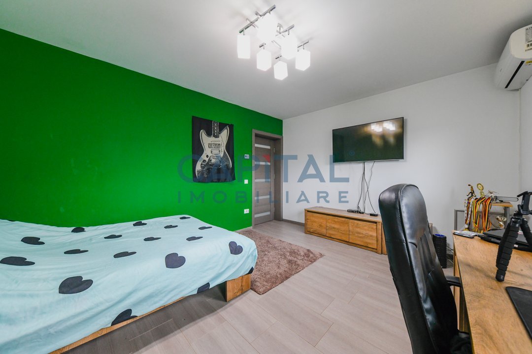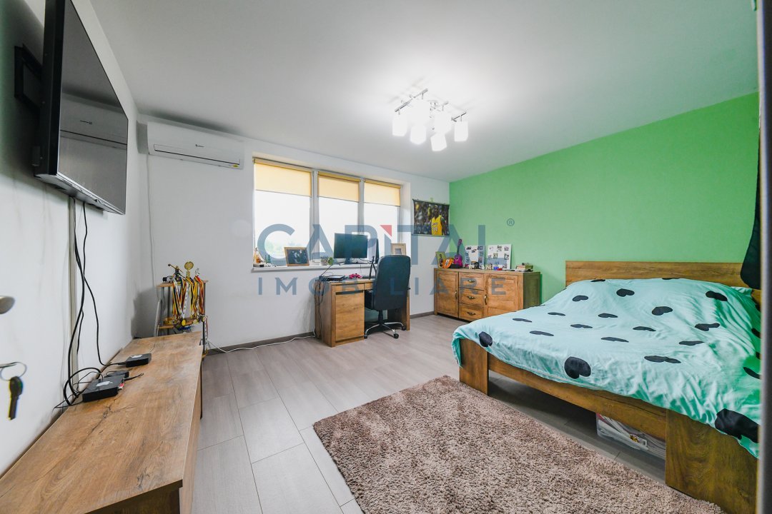 – etaj: 2 dormitoare, 1 dressing, 1 baie, 1 camera.