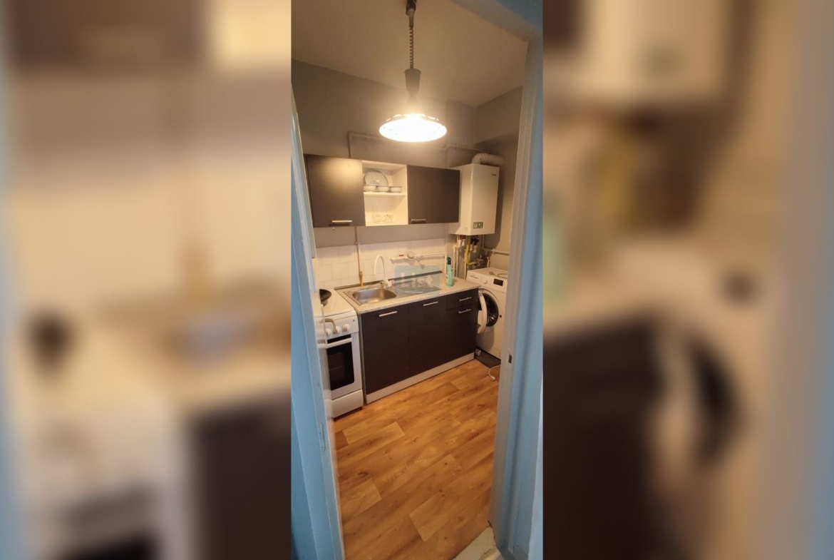 Garsoniera beneficiază de multă lumină naturală și dispune de bucătărie separată. Este renovată recent, cu gresie, faianță și mobilier nou, oferind spații generoase pentru depozitare.
