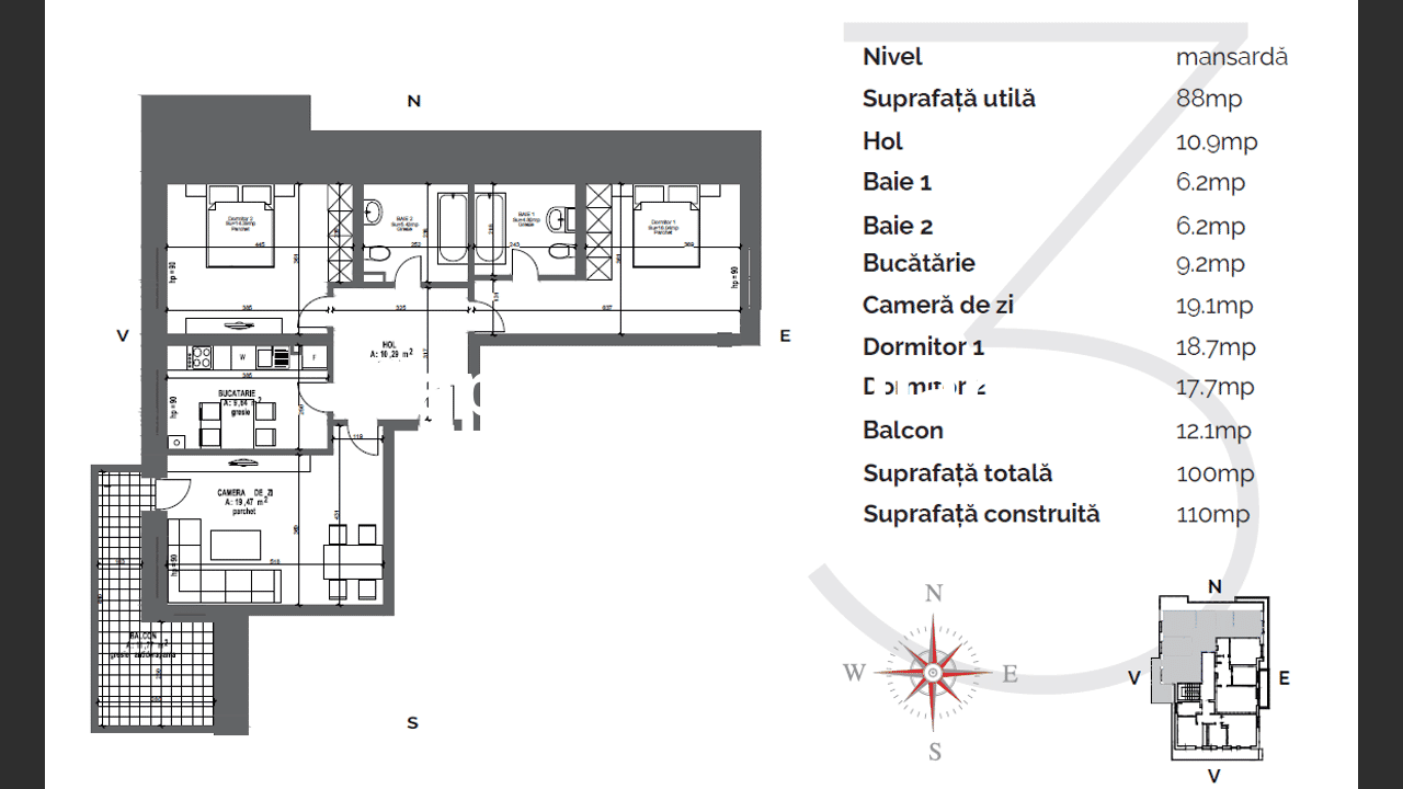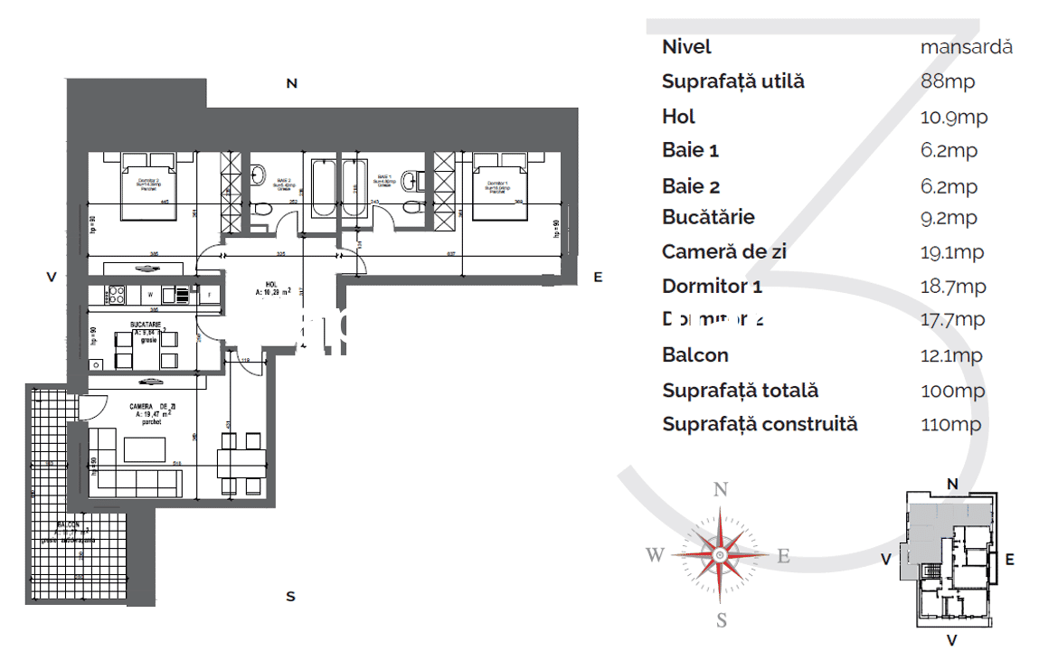 Izolație termică superioară: 10 cm exterior, 30 cm la acoperiș