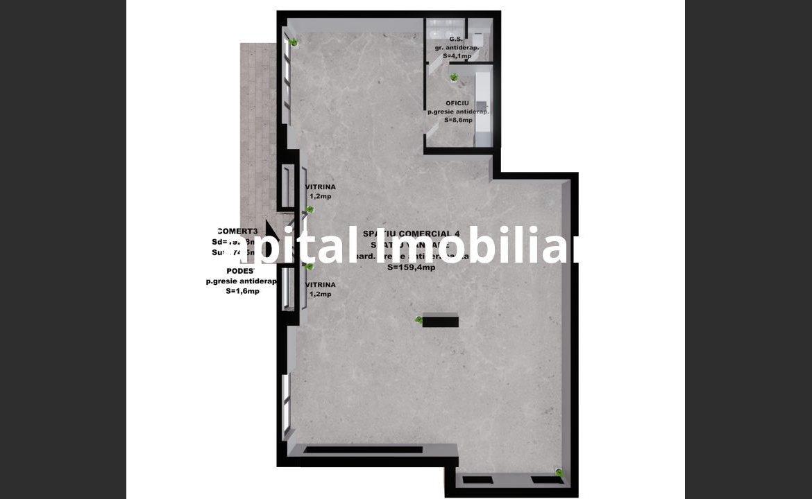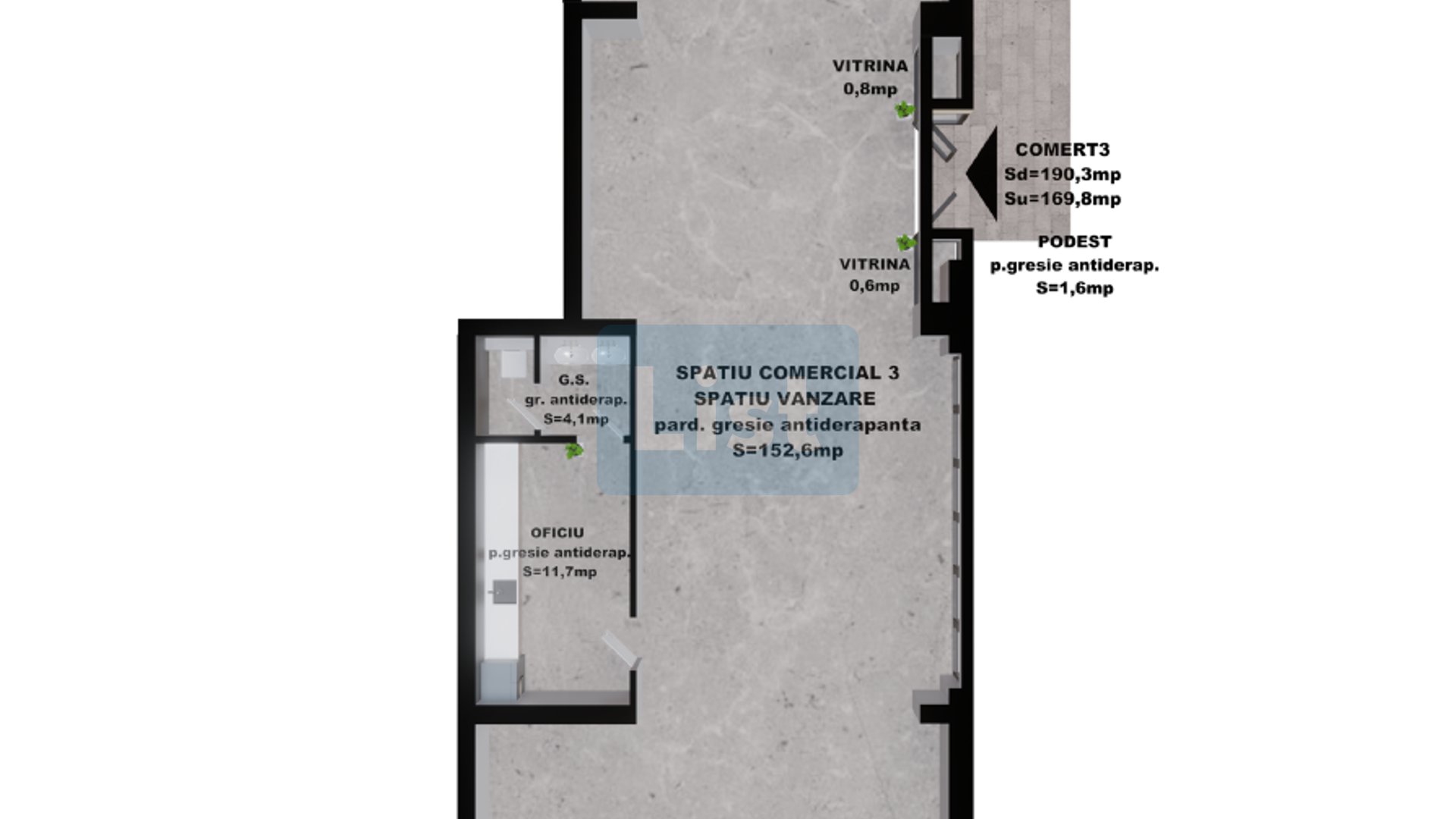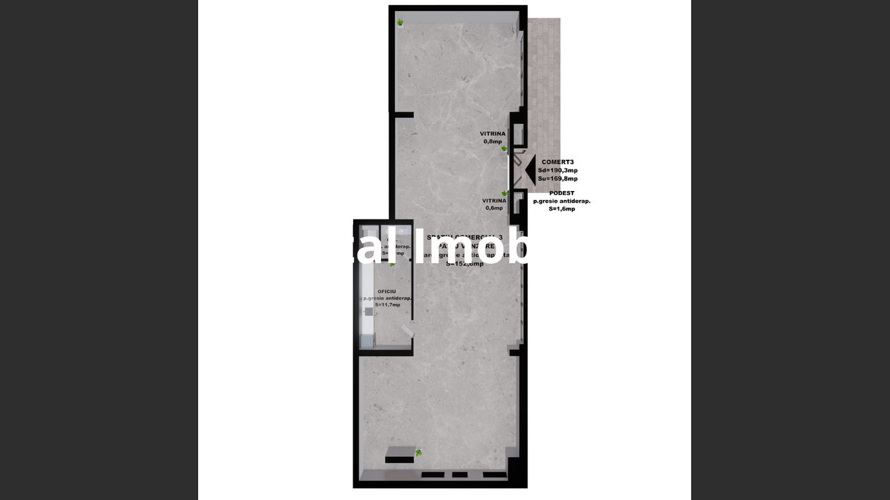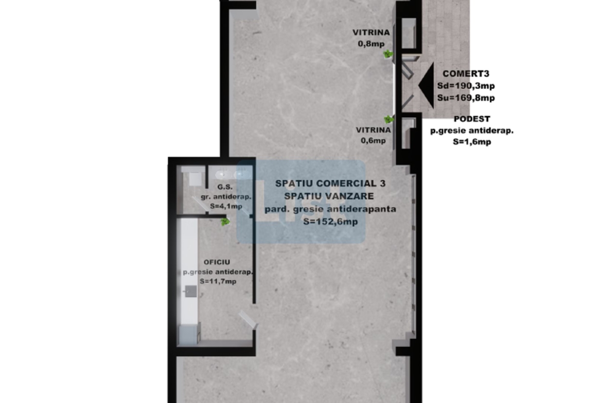 Spatiu comercial 3: 169.80 mp – 331,110 Euro+TVA,
