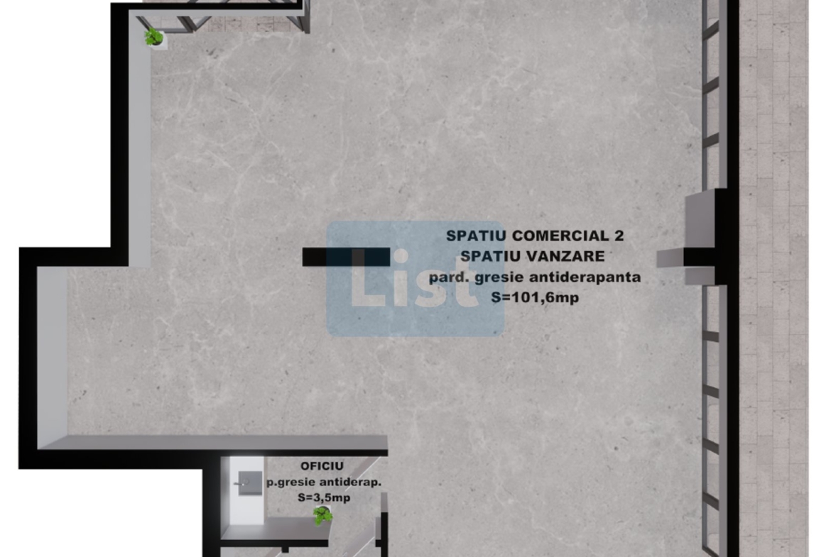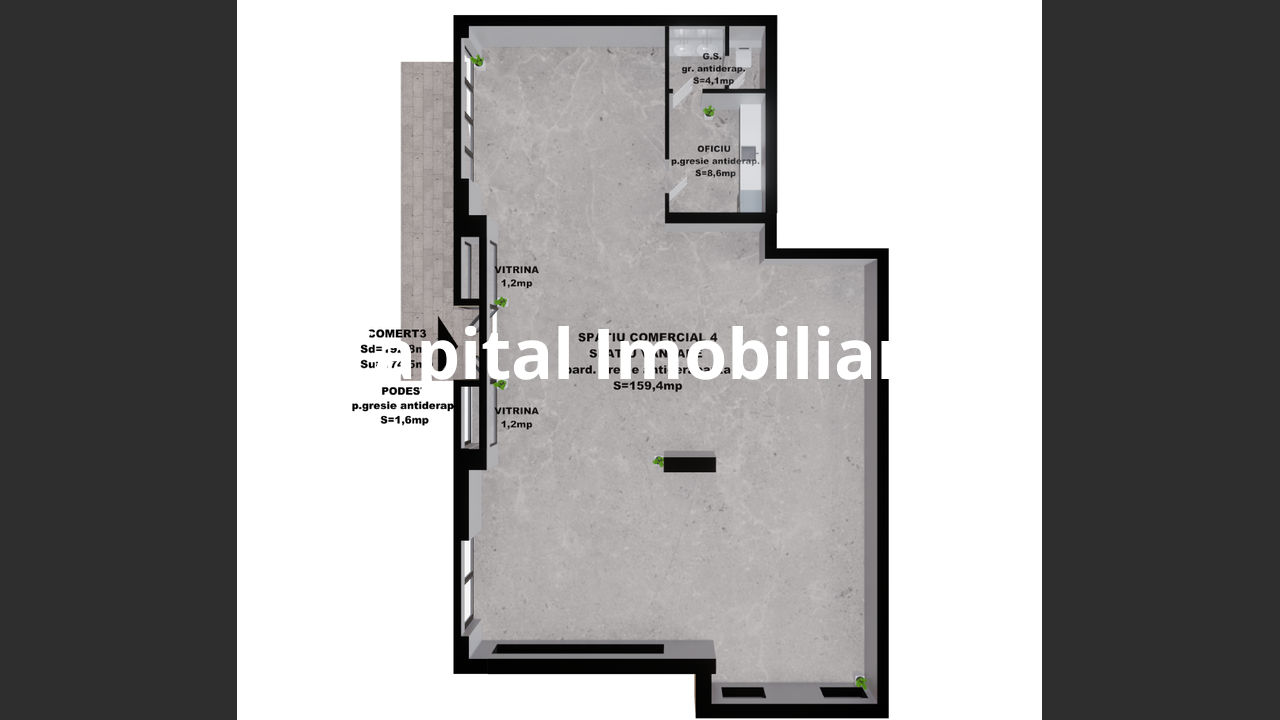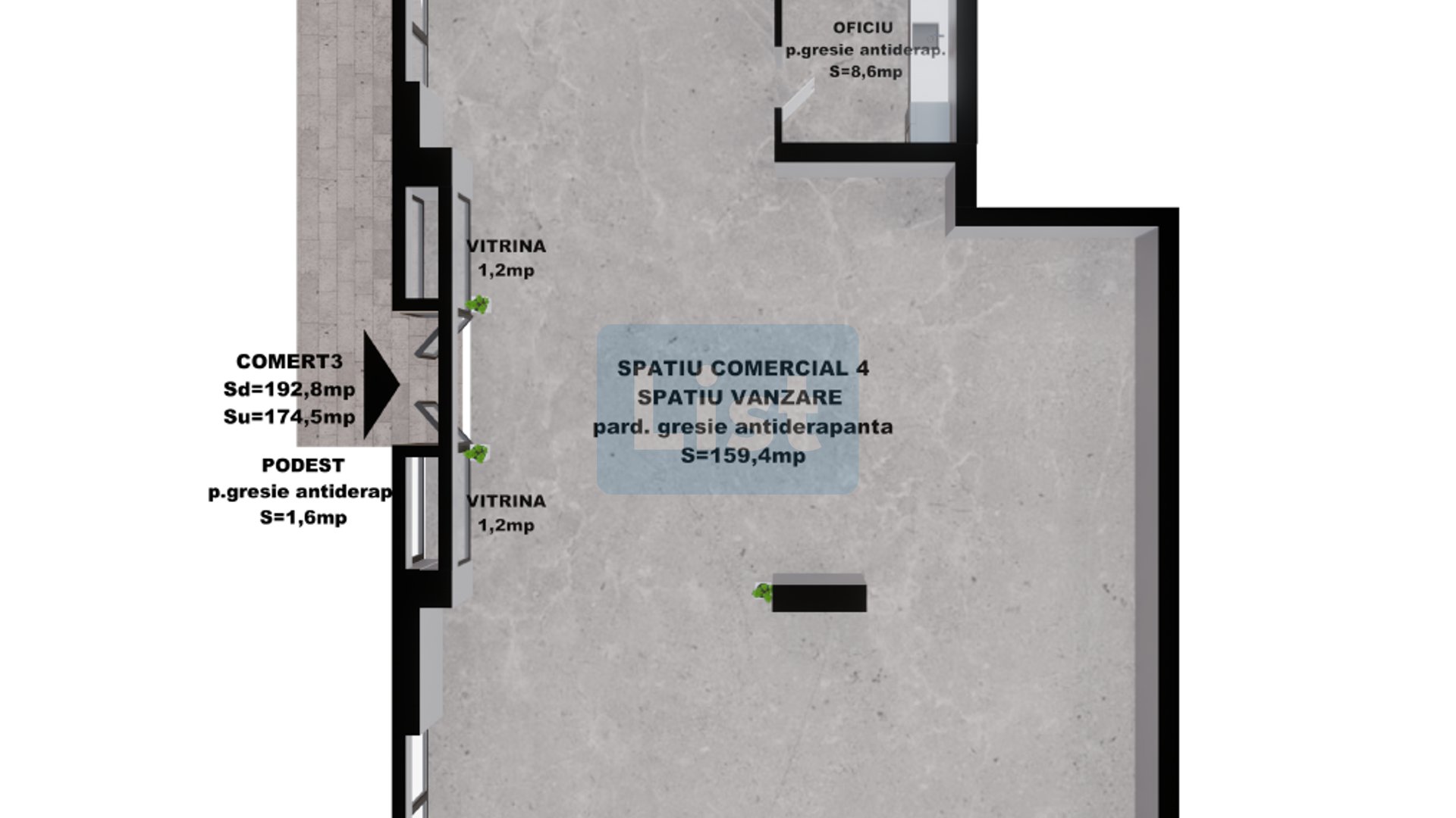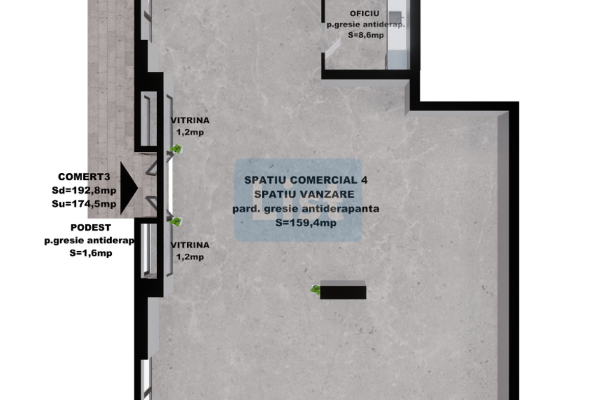 Spatiu comercial 4: 174.50 mp – 340,275 Euro +TVA.