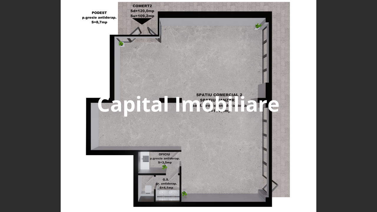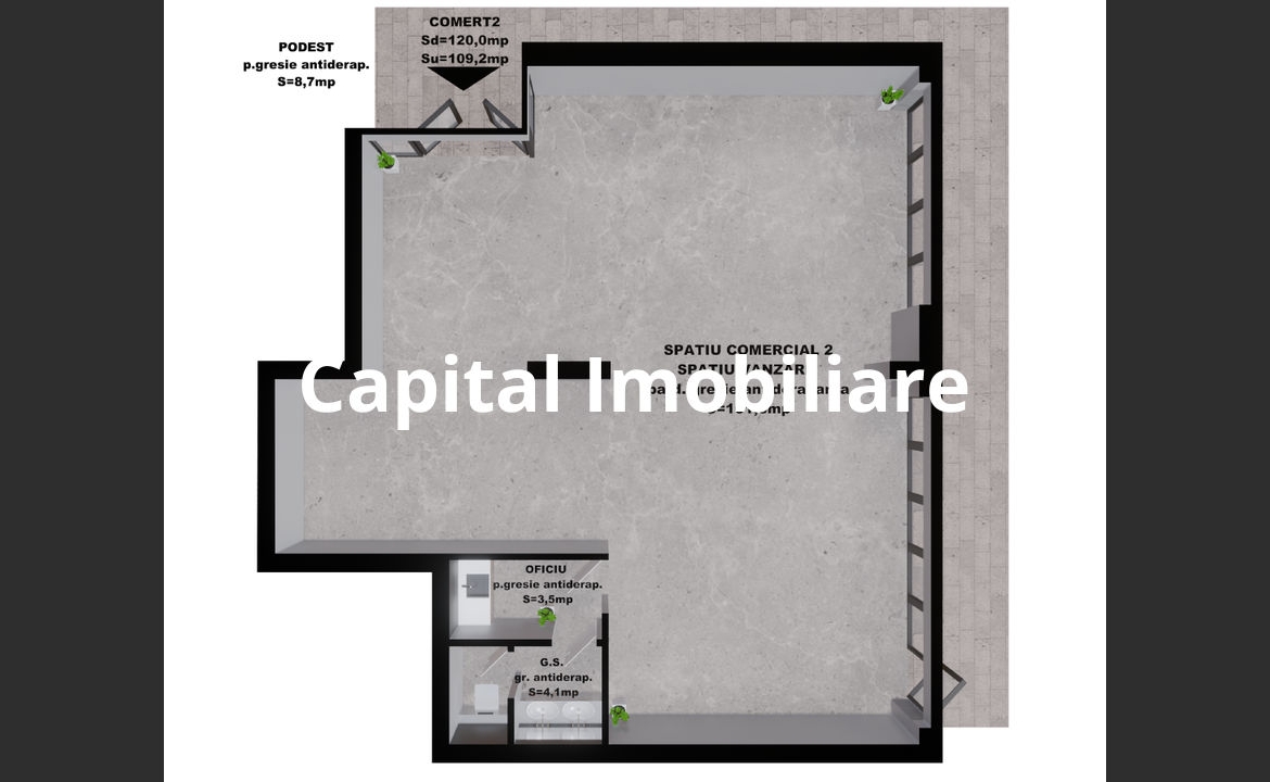 Spatiu comercial 2: 109.20 mp – 212,940 Euro +TVA,