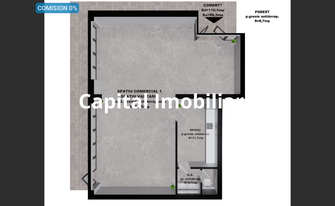 Spatiu comercial 1 : 99.30 mp – 193,635 Euro+TVA,