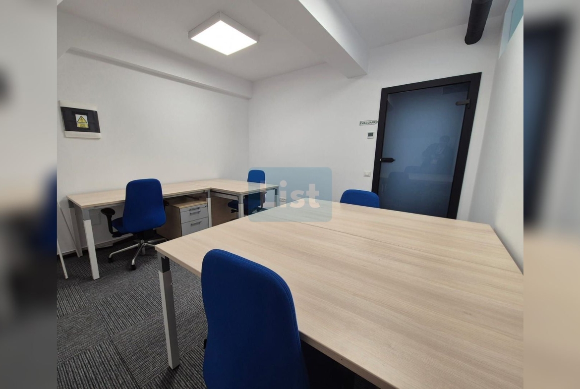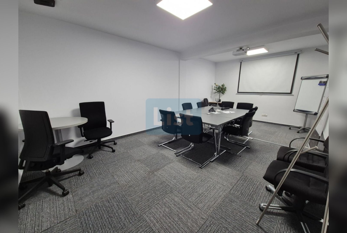 Spațiul dispune de 10 birouri separate și 27 de locuri de muncă complet echipate (mese, scaune ergonomice, casetiere, cuiere, prize date și curent), precum și o sală de ședințe dedicată, dotată cu proiector, ecran și echipament de videoconferință. Cele 3 toalete complet utilate asigură confortul întregii echipe.