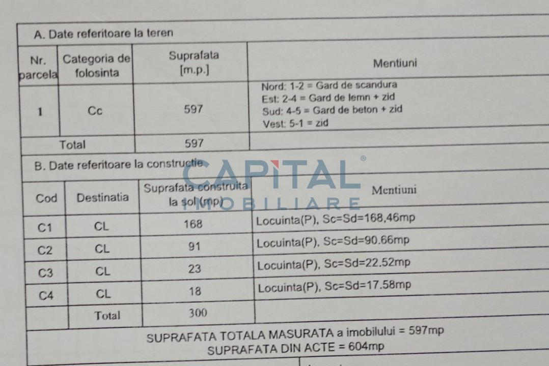 Capital Imobiliare va propune spre vanzare un teren cu o suprafata de 597 mp .