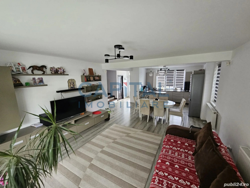 Casă modernă, mobilată, într-o zonă premium – Florești, str. Urusagului. O locuință ideală pentru familii! Construită în 2016, această casă tip duplex oferă confort, funcționalitate și intimitate. ✅ 125 mp utili – compartimentați eficient pe parter și etaj ✅ Teren 250 mp – grădină amenajată, gazon, sistem de irigații, magazie pentru depozitare ✅ Parter: Living spațios cu ieșire pe terasa acoperită (20 mp), bucătărie modernă open-space, birou, baie cu duș ✅ Etaj: 3 dormitoare luminoase (1 cu balcon), baie spațioasă cu cadă, domitorul matrimonial este are baie proprie ✅ 🏡 De ce să alegi această casă? ✔️ Zonă aerisită, liniștită și verde – fără trafic intens, perfectă pentru familii ✔️ Priveliște superbă și aer curat, fiind poziționată pe un deal însorit ✔️ Acces facil către Cluj-Napoca, mall-ul VIVO!, Metro, Parcul Poligon ✔️ Comunitate selectă – cartier alcătuit doar din case, ideal pentru cei care apreciază intimitatea și siguranța 💚 Trăiește în armonie cu natura, fără să renunți la confortul urban! Casa este mobilată și utilată complet, gata să devină ACASĂ pentru tine și familia ta. COMISION ZERO LA CUMPARARE. Va astept la vizionare