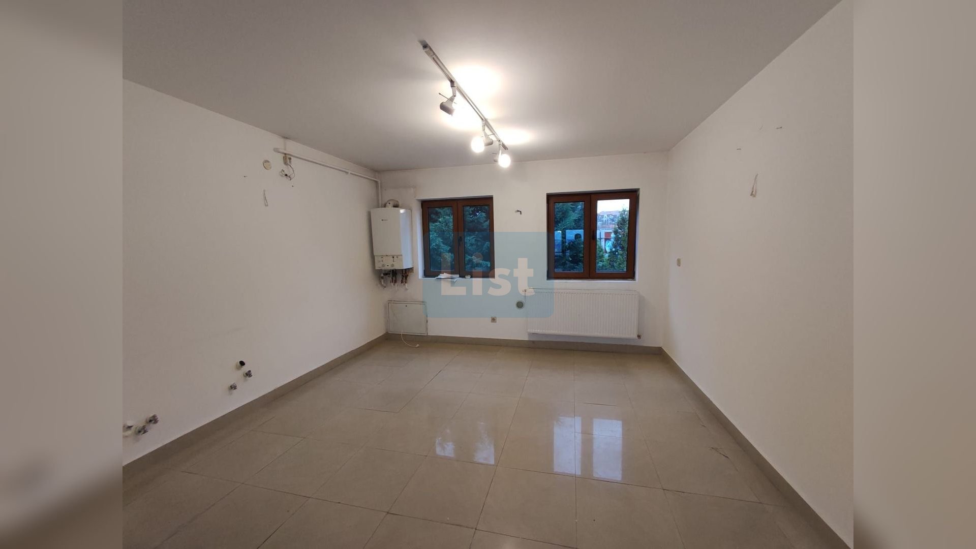 • Pereți (vopsea lavabilă, faianță) Ferestre cu geam termopan (PVC) Uși interior (lemn)